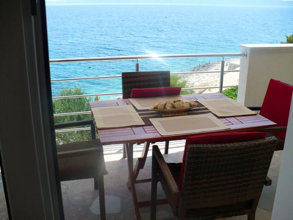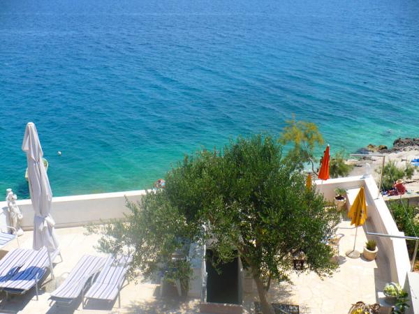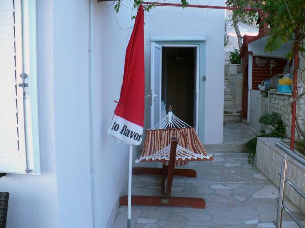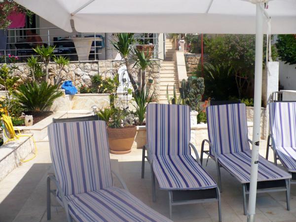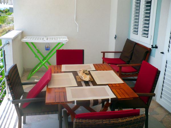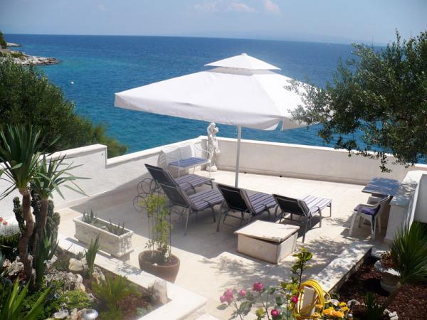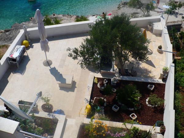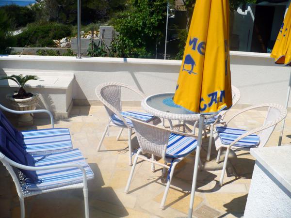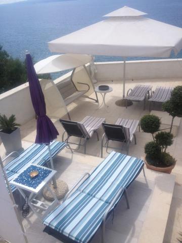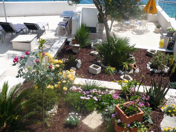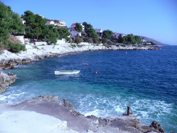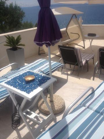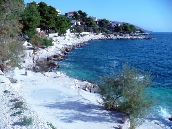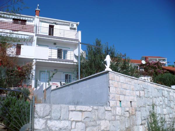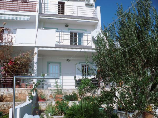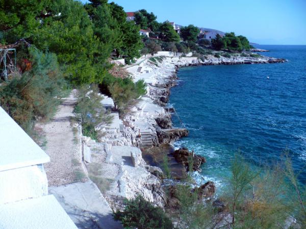 Villa Nives located on the south side of island Ciovo in the cove Rastic in Okrug Gornji. Away from Trogir, about 4.5 km and 20 km from Split. Villa Nives has three luxuriously furnished and air conditioned apartments with satellite TV and parking spaces, and the beach only 15 meters from the apartment. Our guests have a grill and grill for the preparation of various types of Pek and enjoy Dalmatian specialties. For each of apartments with spacious terrace offers a breathtaking view of the islands of Brac, Solta and Drvenik.