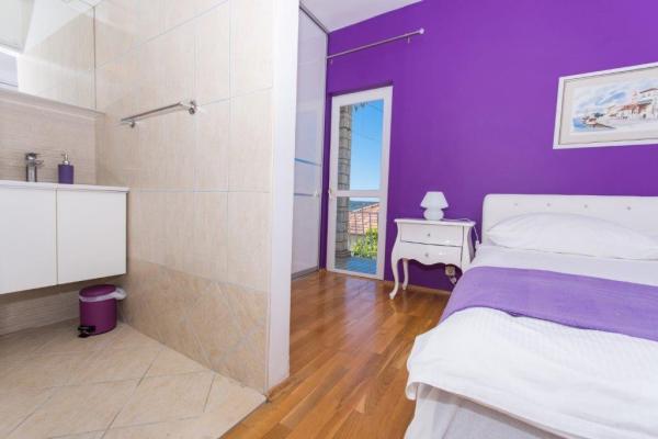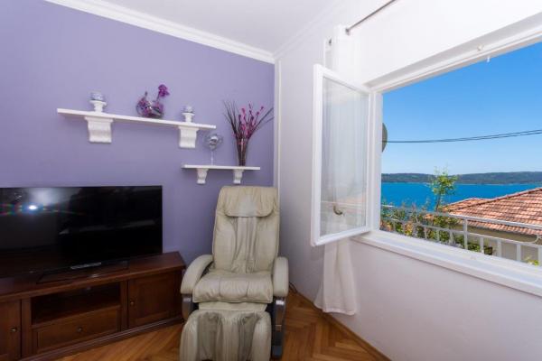 This is a house with tekskluzivna apartments. It is located in an attractive area of the city. The south side of the island Ciovo (connected by bridge to the shore and the beautiful town of Trogir (UNESCO)). The house is located in Mirnyi neighborhood, away from the sea (beach with pine trees), some 200m from the attractive town beach in Okrug Gornji about 700m. Distance from restaurants and shops was completed 150m, hospital, post office and all facilities are located in the city center which is located about 15 minutes. walking and some 5 km from the airport Split (offered transportation from the airport by prior agreement with the owners). The house has two apartments. Each is fully equipped and have a wonderful view of the sea. One is categorized with 4 stars. It is located on the ground floor has a terrace and two balconies. 2 bedrooms, living room with sofa bed, dining area and kitchen and 2 bathrooms. Equipped with a fully (air conditioning, Wi-Fi, satellite TV, washing machine, all kitchen appliances, private parking ... a. The second is categorized with 3 stars. He is the first