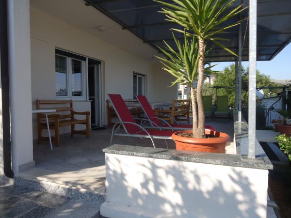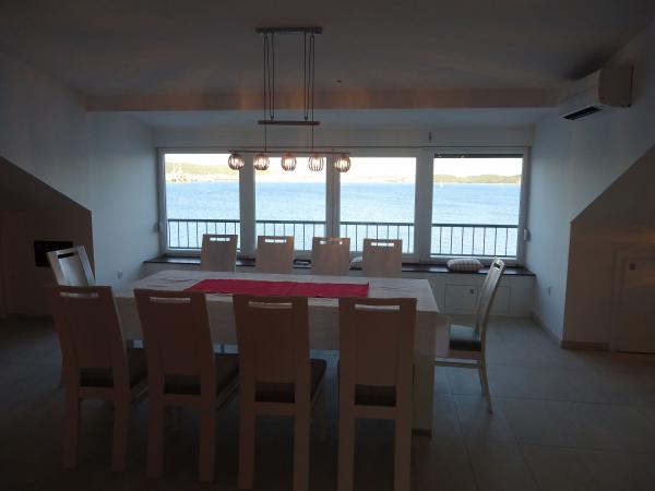 SISKO house is located in the small village of Donji Seget, 2 km from Trogira.Kuća is located on the promenade hotel Honey-Seget 5 m away from the sea. We offer 5 App: 1xA4 +1, 3xA2 +2 and A2. SISKO house can be rented as App A10 +1 guest. In this case, available: 5 double bedrooms, living room and kitchen, 4 bathrooms and toilet, terrace 40 m2, 4 TV & fridges, safes ... App A2 +2 is new app under the roof, size 80 m2.Luksuzno furnished, it has a beautiful view of the sea, the roofs of Trogir and Ciovo.