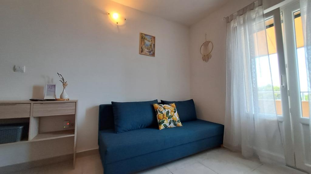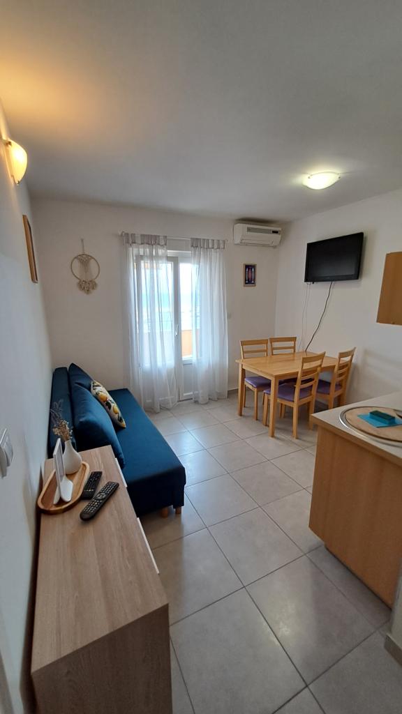 Completely new and modernly furnished apartment in Trpanj, located first row to the sea, on the second floor of the house. The facility is located a few steps from the beach and minutes from the center. The apartment consists of one bedroom, fully equipped kitchen within the dining room and living room, bathroom and large terrace. The room includes a double bed and an extra bed, while in the living room a sofa bed for up to two people.