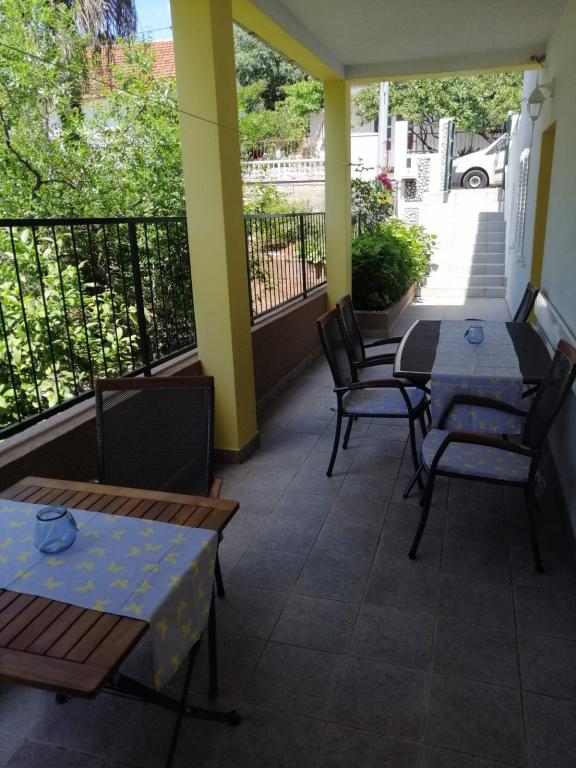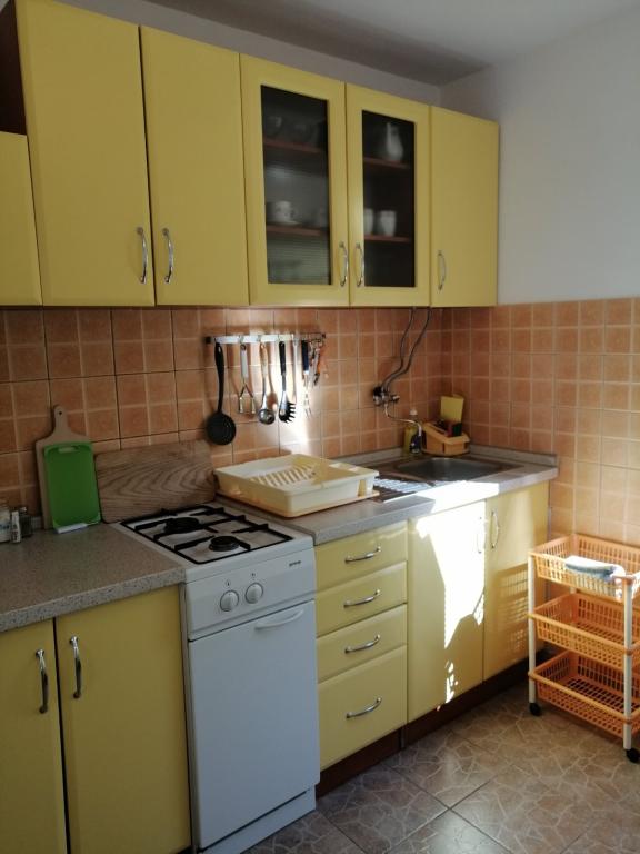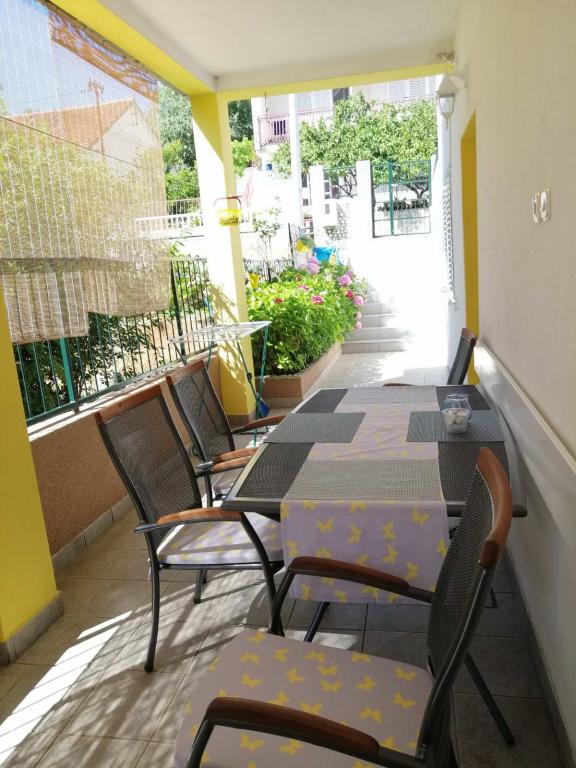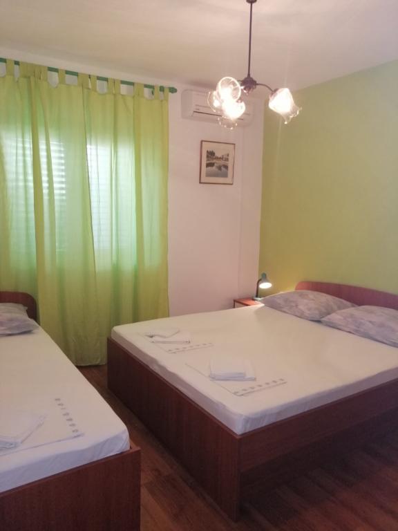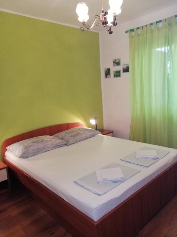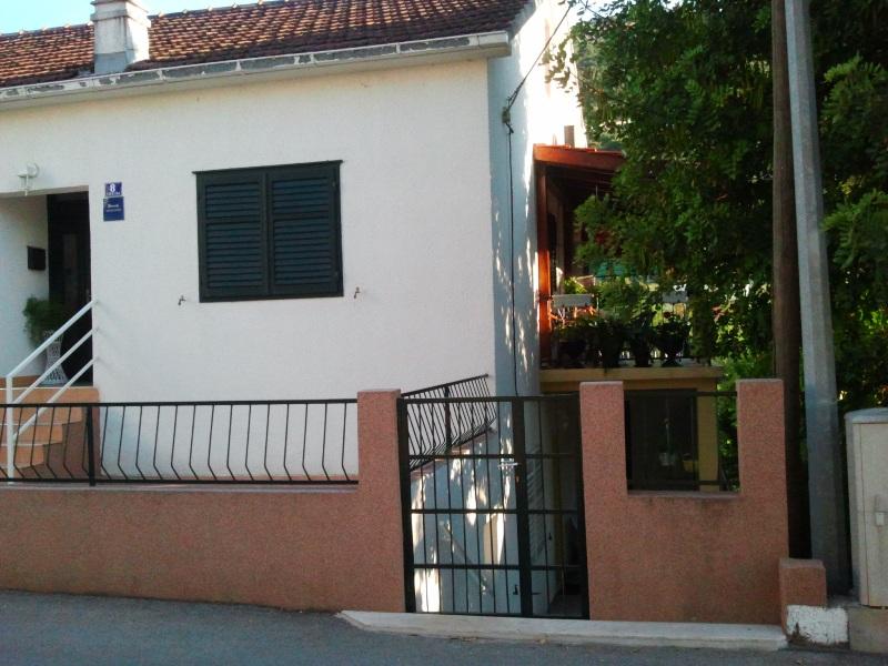 The apartments are located on the ground floor (basement) with a large fenced yard, the hosts are on the first floor, suitable for a group of friends or a larger family, the terrace is shared. Total capacity up to 8 people. The home is not on the main road, we are in an ideal location, a 10-minute walk from both the center and the most beautiful and largest beach in the town. The yard is fenced, which is extremely suitable for small children. For children's entertainment, we offer a 305 cm trampoline in the garden itself, in the immediate vicinity of the building, surrounded by olive groves and green citrus fruits. Football field, basketball court, children's park with children's and fitness equipment, promenade-promenade along the entire length of the town by the sea, about 1.3 km long, suitable for running, cycling and walking, as well as the stairs to the Church of St. Rok with approx. 250 steps, it is only about 150 meters away from the house. The parking lot is provided in the immediate vicinity of the building.