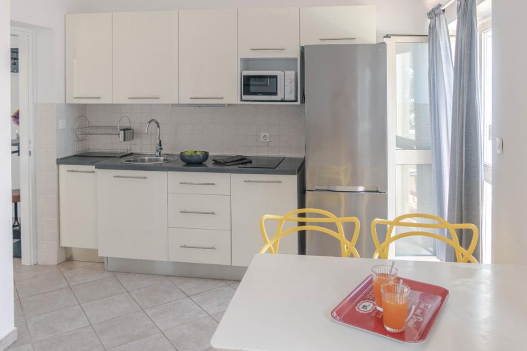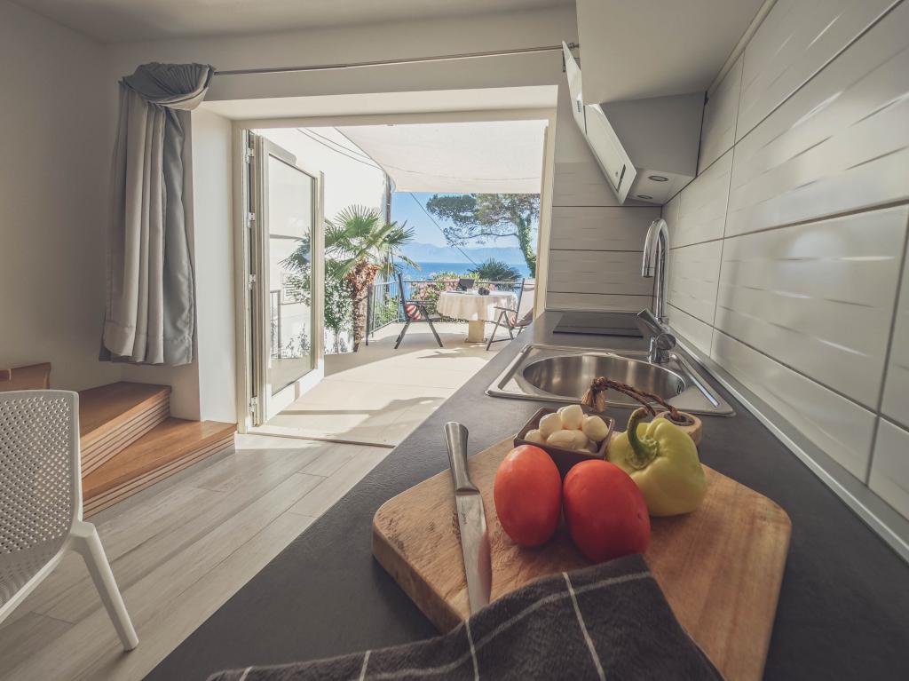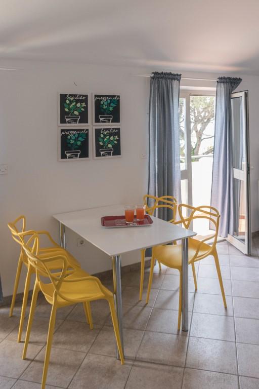 Modernly equipped holiday apartments, in a family villa in Trpanj, a beautiful fishing village on the northern side of Peljesac peninsula. Pine forest, Mediterranean vegetation, olive trees and clear sea are characteristic of this picturesque area. Outside the noise and everyday crowds, the villa is located directly by the sea and the pebble beach, with a beautiful view of the place, about 150 meters from the center of Trpanj. Private parking in front of the villa is provided for all guests. The accommodation consists of four apartments, two of which have two double rooms and two with one double room. All apartments are air-conditioned, have fully equipped kitchen with dining area, living room with extra bed and TV, bathroom, and front and side terraces offering a beautiful sea view. Baby cot available on request. If you want to try out the preparation of Dalmatian grill specialties, grill is allowed. Pets are welcome.