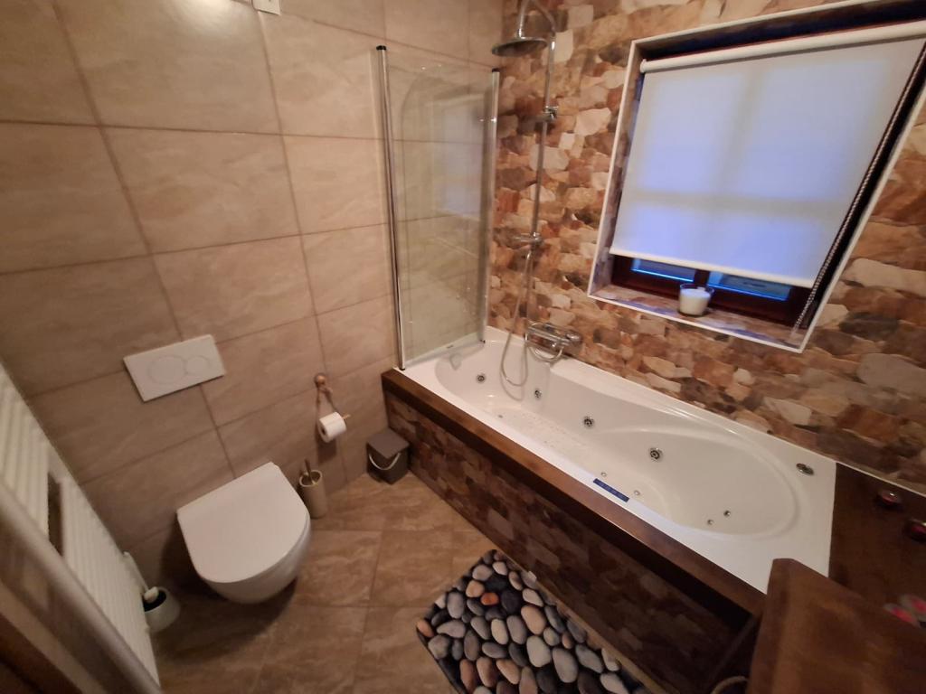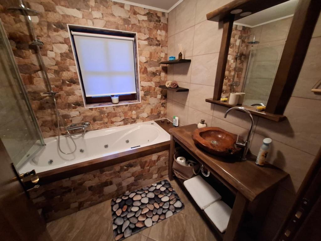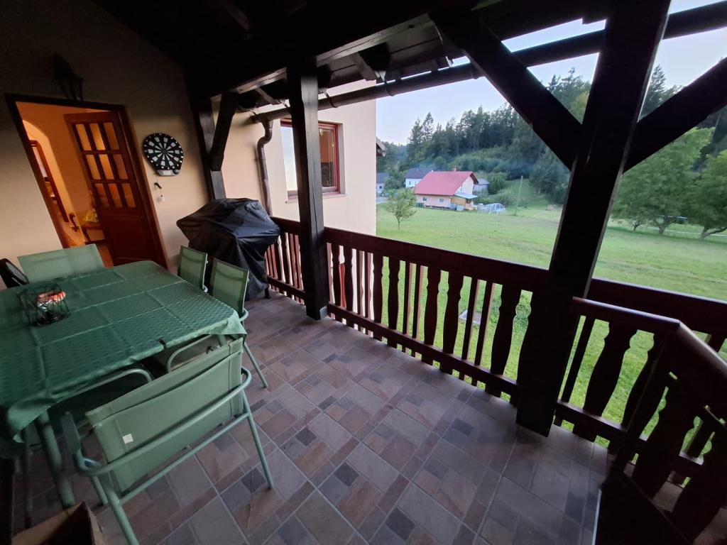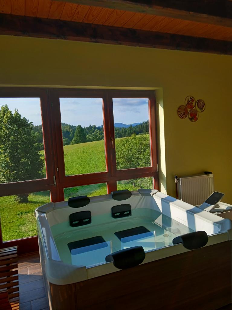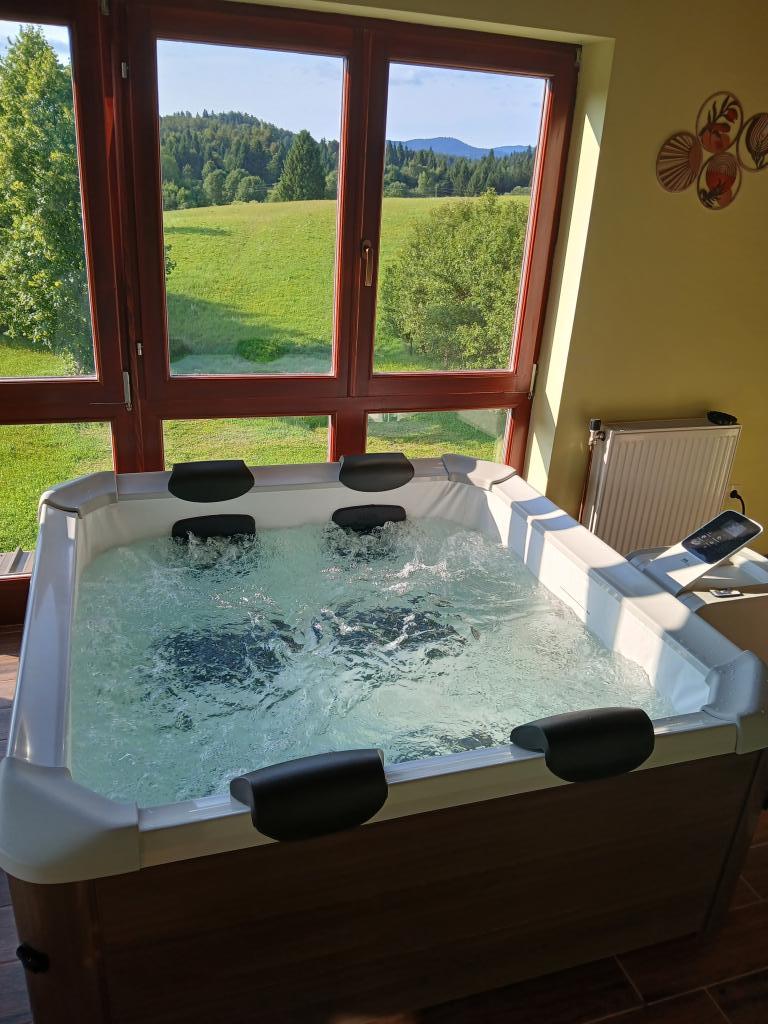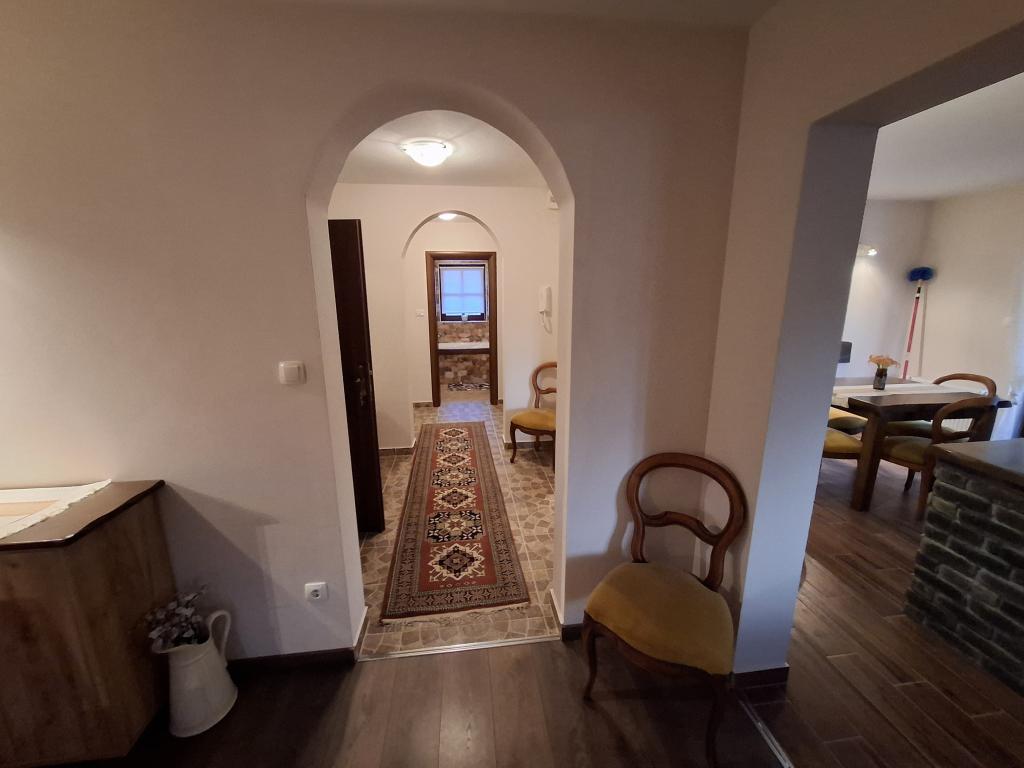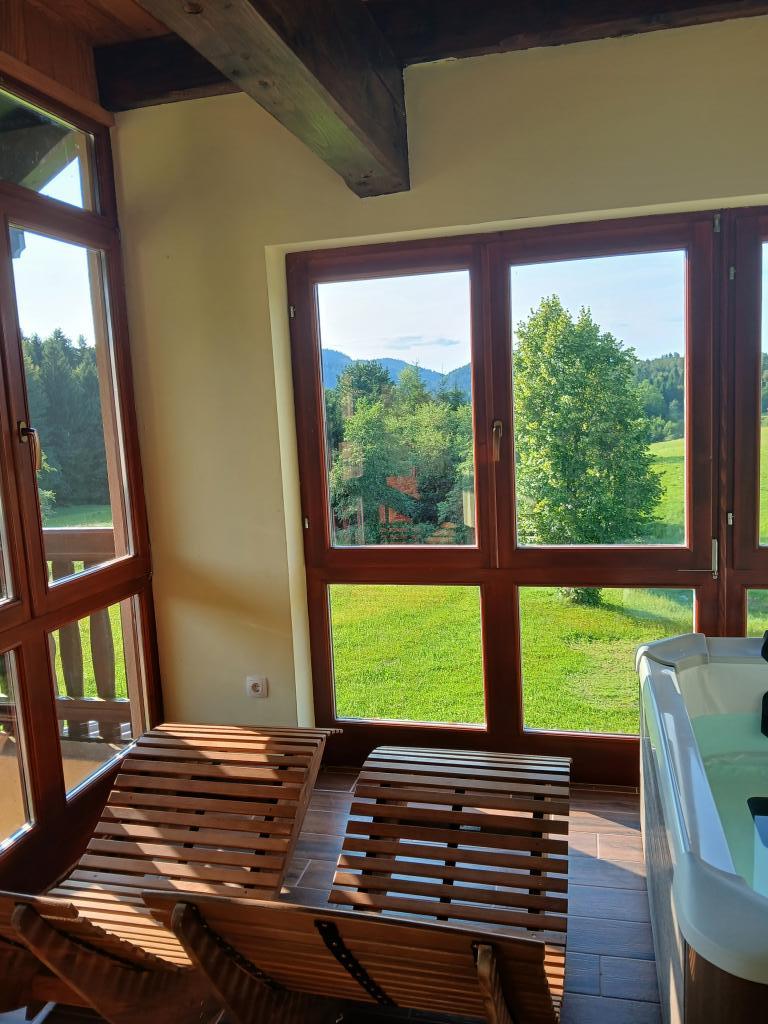 You are looking for peace and quiet, surrounded by green meadows, hills and forests, be our guests. The green heart of Croatia, Gorski kotar, the town of Tršće is one such place. At Lazi 7, the first floor of a new house is occupied by the new apartment KATARINA. It covers 150 m2 of living space. It is decorated in a combination of rustic and modern style. Two double bedrooms, a bathroom with a jacuzzi, a large kitchen with a dining room are part of the apartment. The kitchen is equipped with a dishwasher, a large refrigerator with a freezer, an oven and a stove with an induction hob. Small household appliances are part of the kitchen. The soul of our apartment is a large living room with a fireplace, and a winter garden that will take your breath away. The view of the meadows, the forest with a cup of morning coffee can turn your morning into a memorable moment. You can also play various board games, electric darts. Two terraces are an integral part of this apartment. On the terrace, from which stairs lead to a spacious green courtyard, there is a gas grill and a table for 6 people.