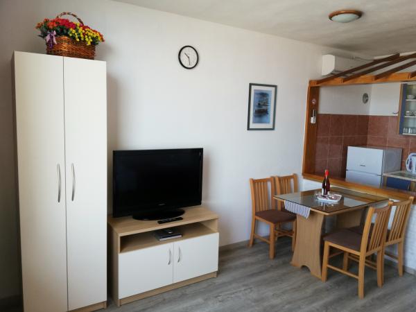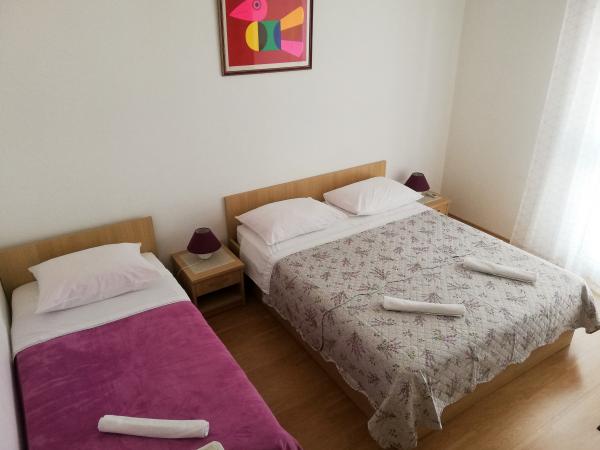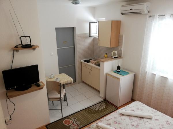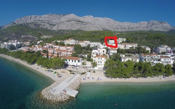 Modernly equipped apartments and rooms in the vicinity of Makarska, 100m from the sea. The facility is located in Tucepi, 5 minutes walk from the town center. It is located on the elevation, which gives the accommodation a beautiful view of the sea and the only place. In the accommodation there is an apartment for 4 or 5 persons, a studio for 2 persons and two rooms for 3 persons. The price includes internet, air conditioning and parking.