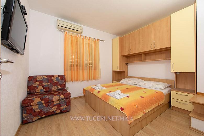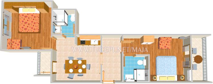 The beach is 20 meters from the accommodation, and the center is 50 meters away. In the center there are shops, a post office, a pharmacy, as well as coffee bars and restaurants. The apartment consists of two separate rooms. Each room has air conditioning and a private bathroom. Also in each room there is a TV with satellite channels. The apartment has free Wi-Fi and parking.