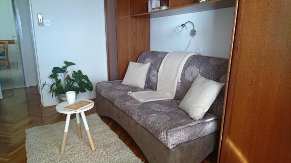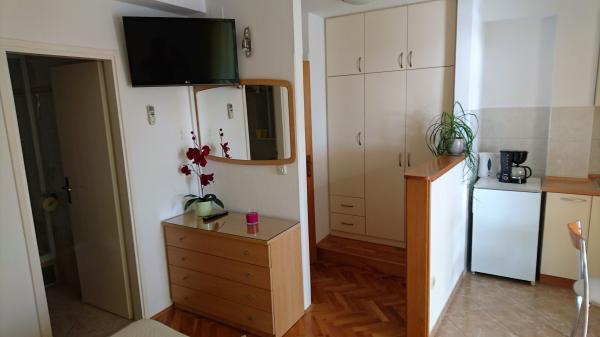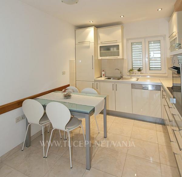 Apartment Vanja II is located in the center, 30m from the nearest beach, and close to restaurants, post office, pharmacy ... This modern decorated deluxe apartment stretches over 3 floors and each has a balcony overlooking the sea where you can enjoy the beautiful sunsets! On the first floor there is a spacious kitchen (dishwasher, microwave) and a living room on the second floor is a room with a double bed and a bathroom on the third floor of a room with a double bed and a room with a single bed and a bathroom! Each room has a TV, Internet, air conditioning ... Apartment 4 1 (max 6 persons) is ideal for a family or two families, where each has its own privacy!