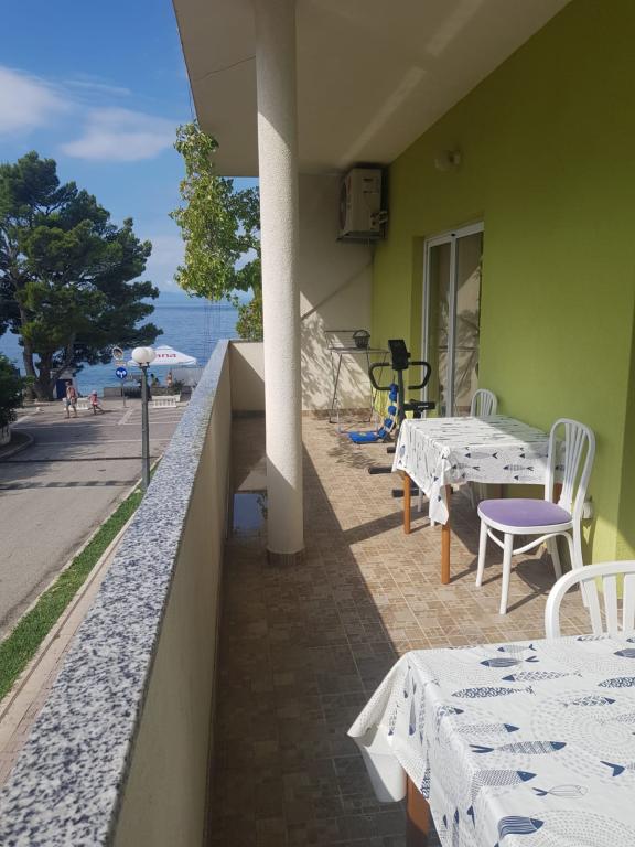 I highly recommend Mrs. Biljana's apartment! It is nicer than in the photos, details regarding location, layout and amenities consistent with the description. Apartment clean, well-kept! We didn't miss anything. At our request, we easily received additional equipment in the form of a sandwich maker and a hair dryer. Clean bedding, nice furniture. A big advantage is the large terrace. Towels changed every 3 days. Parking for a large bus was provided by Mr. and Mrs. Saric. We had no problem with anything, the owners did not interfere in any way during our stay. They were very nice and hospitable. Every request or question from our side was implemented/explained. The wonderful thing is that the apartment is literally in front of the sea. Nothing but relaxation, I recommend it!