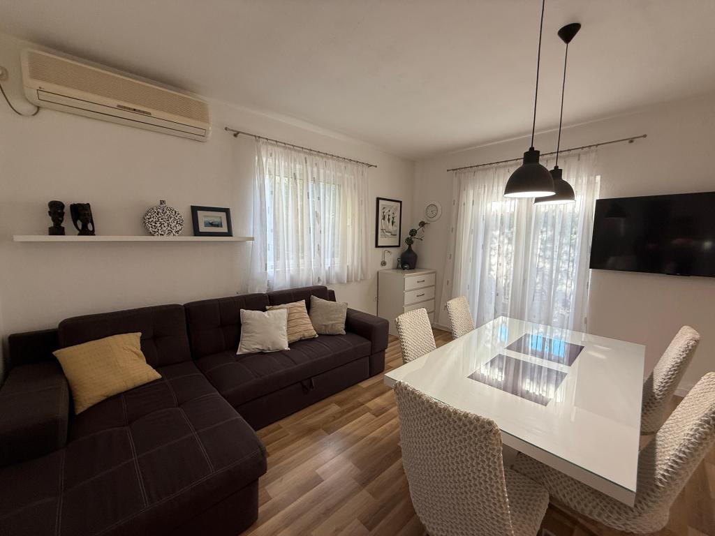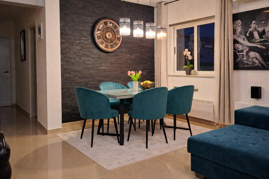 The best vacation, the apartment is superbly decorated, clean and equipped with everything you need for a pleasant vacation, real luxury, a large terrace and a beautiful view of the sea, secured parking, etc... everything is just like in the pictures, the owners are very kind, everything was great, everything is within reach, the beach, the sea is close and crystal clear, our family had a great time and only praise to the owners for taking such good care of the apartment, it is clear that it is very important to them that the guests are satisfied and that they lack nothing. We will definitely come back again