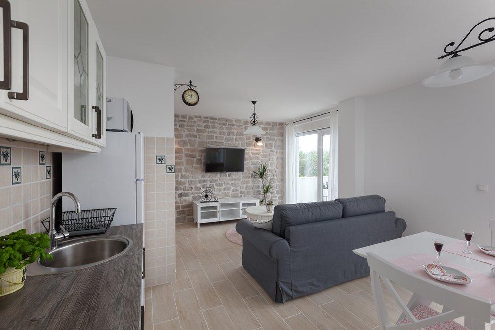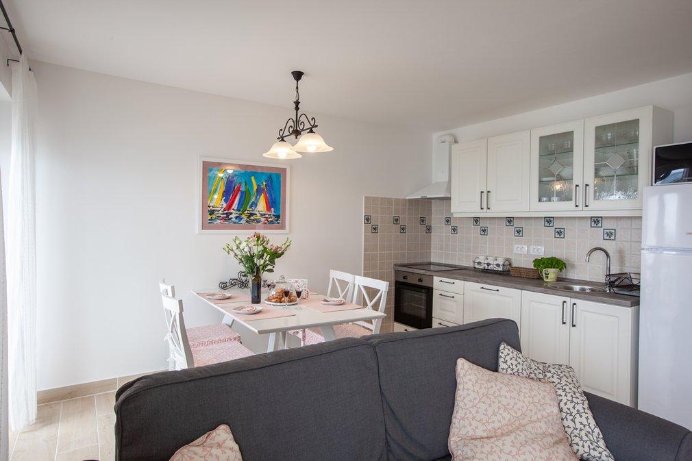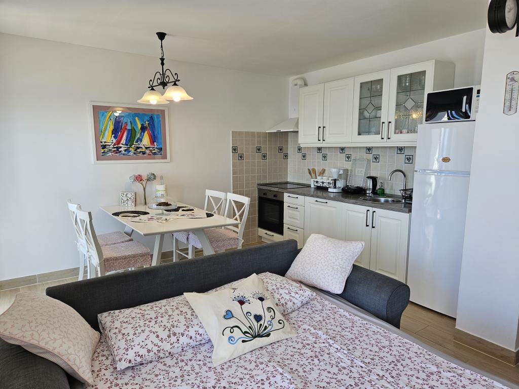 All praise, both for accommodation and for hosts. Neat, clean, and more than that. The terrace view is wonderful, for all those who enjoy watching the sunset. For nearly 13 years we have been in the HR but we are really really delighted for the first time, so far we have been satisfied. But this location and everything in the apartment is more than enough for a vacation. And do not even miss the morning coffee on the terrace ..