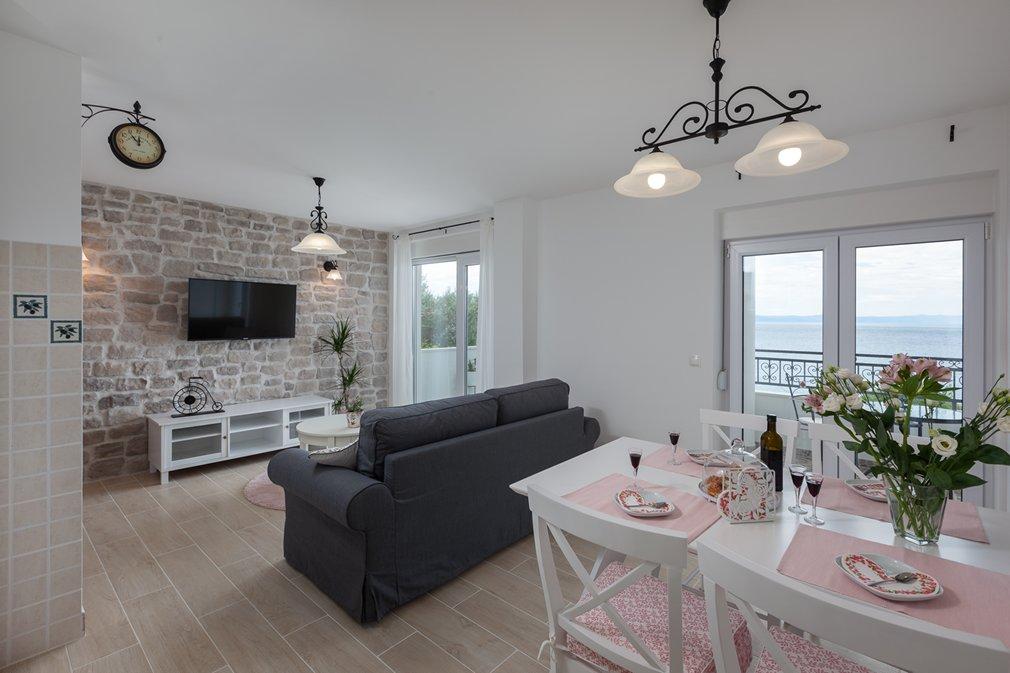 We come to Makarska Riviera for 12 years, 4 times in the summer. But we have not found a better place than this yet. The apartment is really beautiful, the cleanliness is excellent for an excellent rating. The beach is just a few meters from the house. Not to talk about tomeda and wake up every morning the smell and the sound of the sea !!! You really feel at home, because they are all very kind, for my family and for me there really is no better apartment so close to the beach. I give you an excellent rating because it's really great!