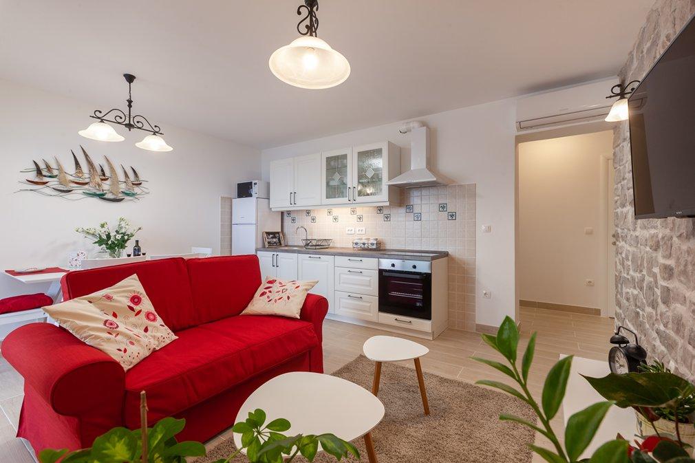 Very nice apartment right on the sea. Everything is there. Kitchen, fridge, hairdryer, plenty of towels, pots and pans,... Very nice location. We have been to Croatia 13 times but this is a very nice region, location and house. Also a super nice and smooth and pleasant hostess.