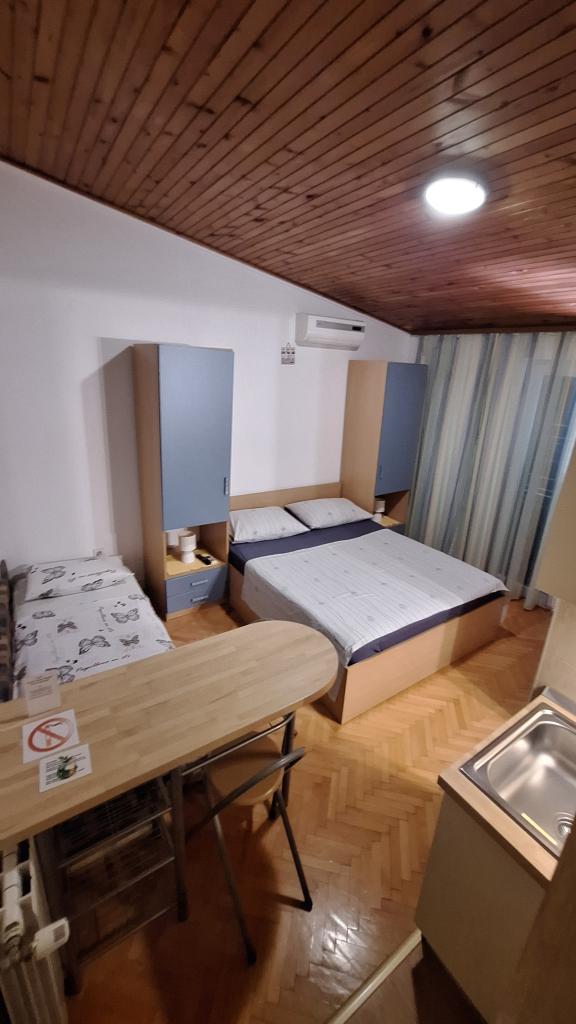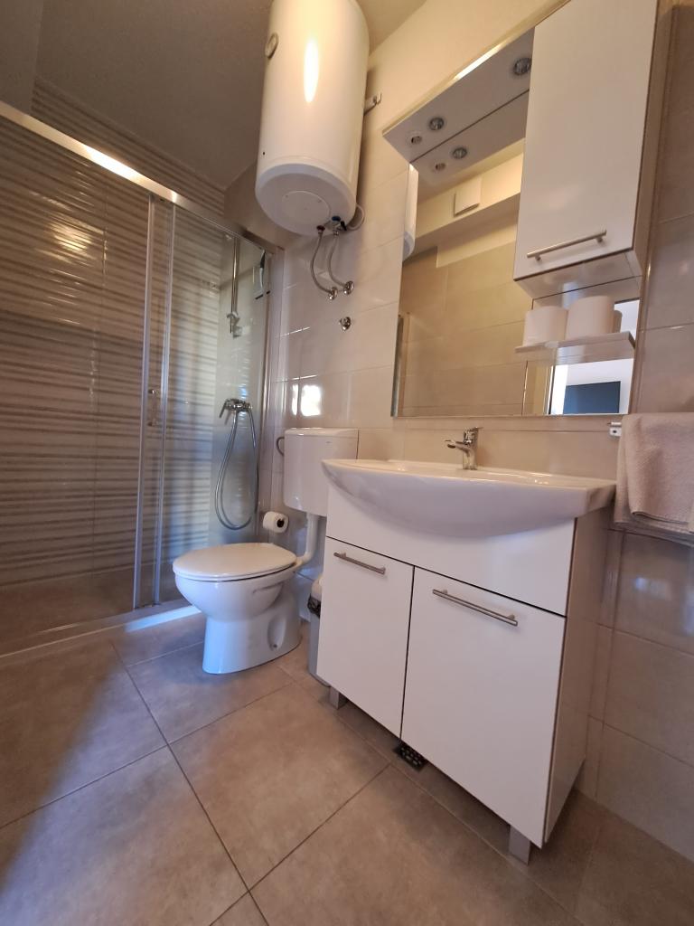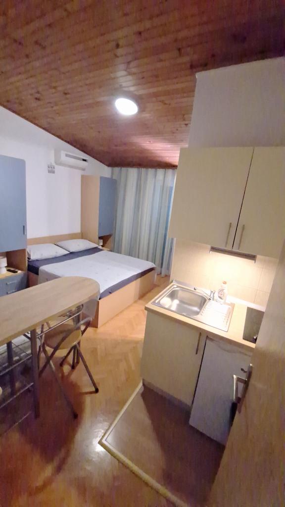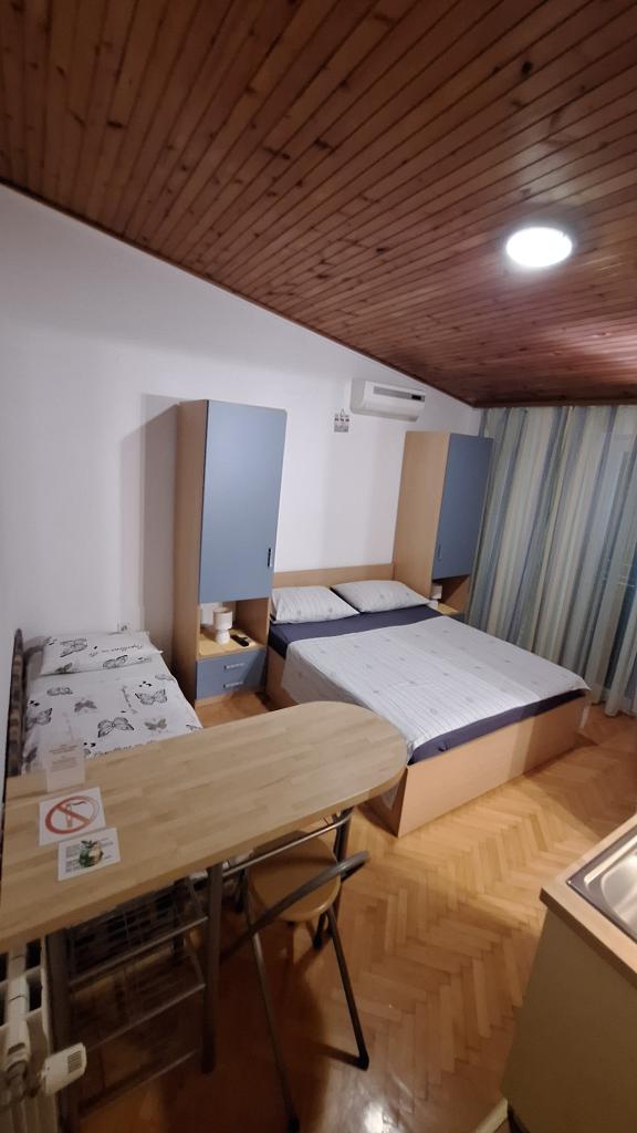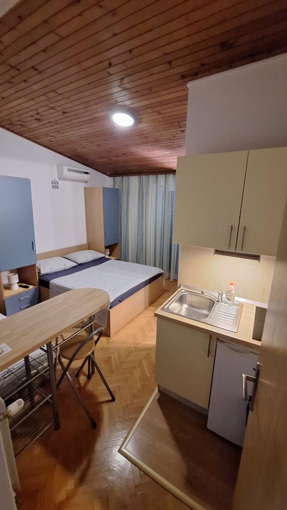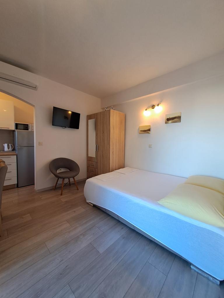 Residential tax is included in price.Room comfortably furnished, modern bathroom, small kitchenette, functional air conditioning, WiFi connection, pleasant sitting on the terrace, house is quiet. Very nice family :) Ideal accommodation for a peaceful holiday by the sea, to the beach about 5 minutes, pebble beach, clean sea, long promenade.