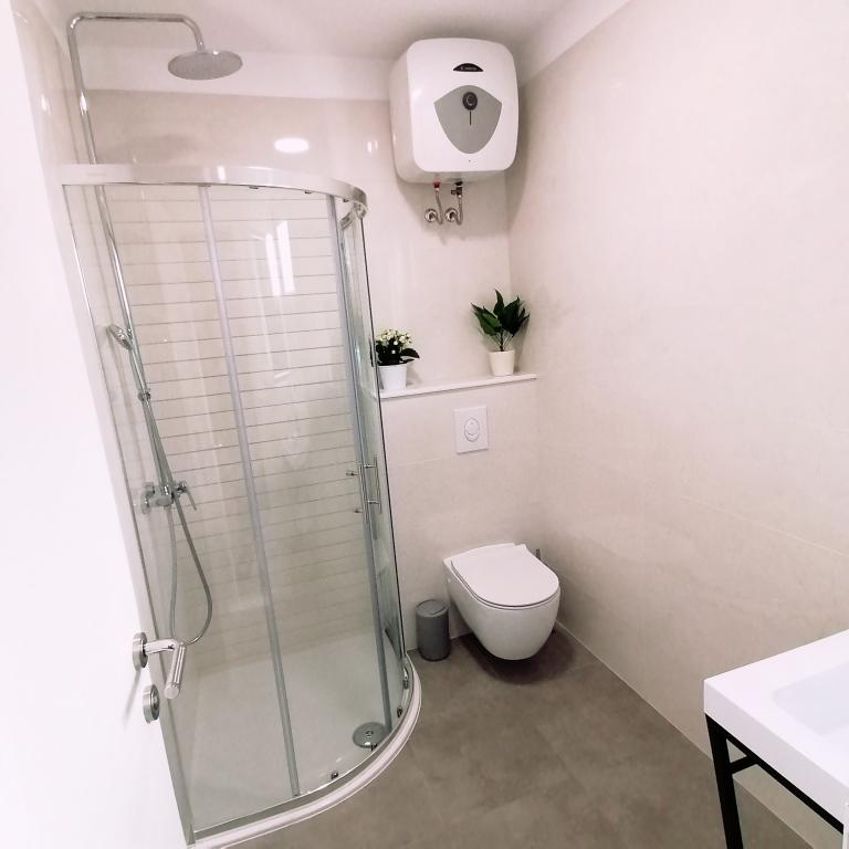 The first thing I noticed right away is that the apartment is EXTREMELY clean. I have often traveled for business and have stayed in hotels in the EU and Great Britain with **** where the rooms are less clean. The furniture is new and functional and exactly as it is in the pictures. The bed in the bedroom is extremely comfortable, and the bedroom faces the back of the house, so that no noise enters it. The shower cabin is new and fully functional. In the kitchen there is a large fridge and a dishwasher. What is not clearly visible in the pictures is the size of the terrace, which must be over 20m2, which is closed on three sides and is open to the sea and offers a great view. A big plus for me is that the parking lot is covered and lit at night. The construction with which it is covered is very strong, which we were convinced of because one night there was a storm and the car was safe under that canopy (it is also covered behind towards the next building). The owner of the apartment is very kind, as is the elderly couple. She went out of her way to fulfill all the specific requirements and explained everything to us. She also brought us wine and local grapes.