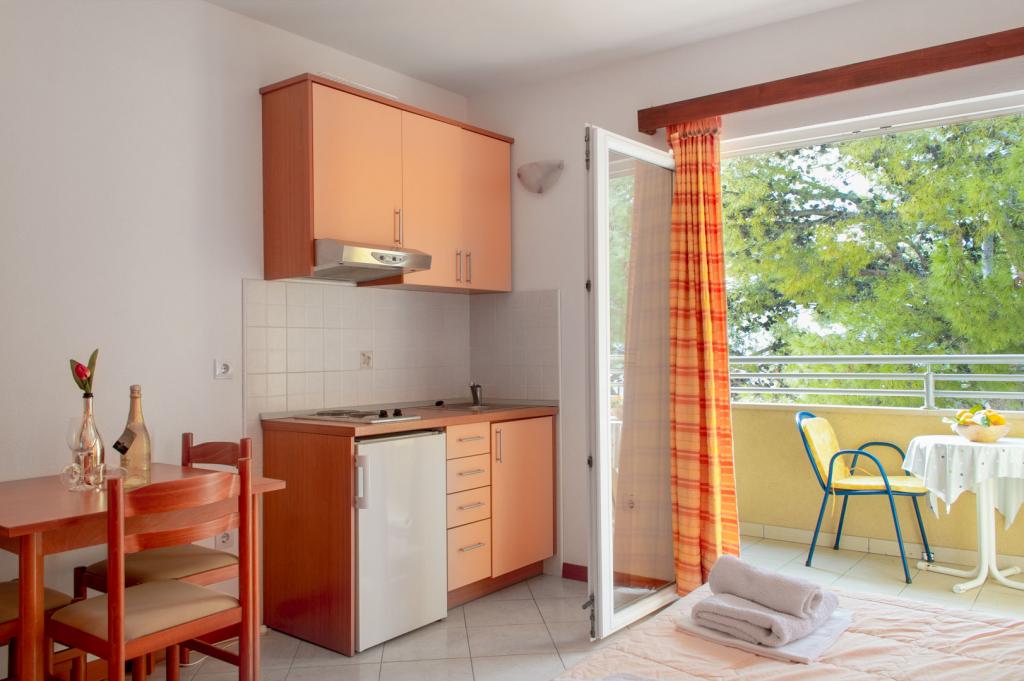 This facility is located on one of the best beaches in the region. On the first and second floor of the house there are 8 apartments for rent. They all have south-facing balconies with seating. Each apartment has an equipped kitchen, microwave, kettle, air conditioning, free Wi-Fi and parking. Laundry service is available for a small fee. Parking is located nearby. For any additional information about individual apartments or the city, feel free to contact us.