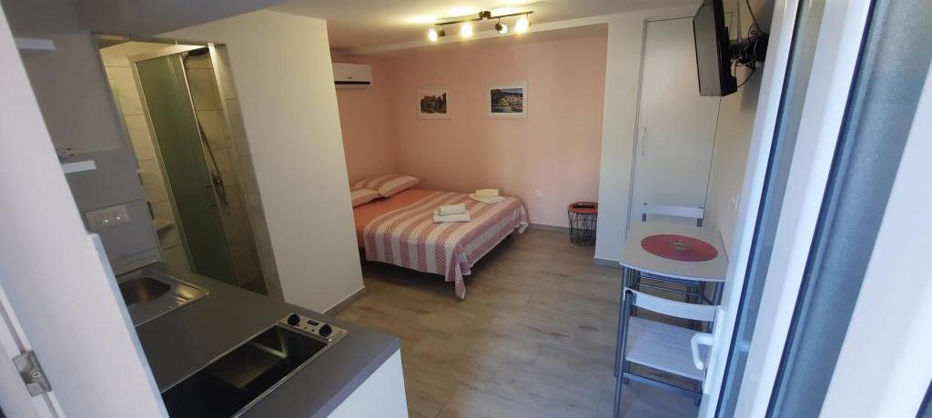 Apartments BUŠELIĆ are fully and modernly equipped apartments. They are located only 70 meters from the sea. The beach is made of tiny cobblestones and is decorated with pine trees that create a pleasant shade. Parking is in front of the house and there is a possibility of using the garage. Satisfied guests and a large number of old guests guarantee the quality offered by the hosts.