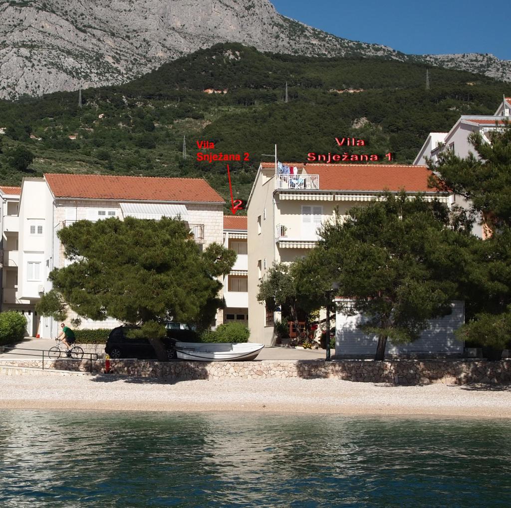 Villa Snježana is located in a quiet part of Tucepi directly next to the most beautiful beach in the Adriatic. The Villa Snježana offers you modernly furnished apartments and studio apartments for 2, 3, 4 and 5 people. All apartments have air conditioning, CTV, signal for WIFI and all necessary kitchen and bathroom equipment. Within the villa Snježana there is a parking for all our guests in the yard of the house under centuries olive trees. We also offer two garage parking places for our guests. In the immediate vicinity there is a beach cafe for a pleasant afternoon coffee by the sea as well as the famous Stone restaurant with superb chef\s delicacies and traditional Dalmatian dishes. The center itself with many cafes, restaurants, mail, pharmacy is 300 m away. The sports center for all sports and hotels in Tucepi is 2km away from us. The loving family of Viskovic with the tradition of over 40 years in tourism will try to make your stay pleasant and to come back to us.
