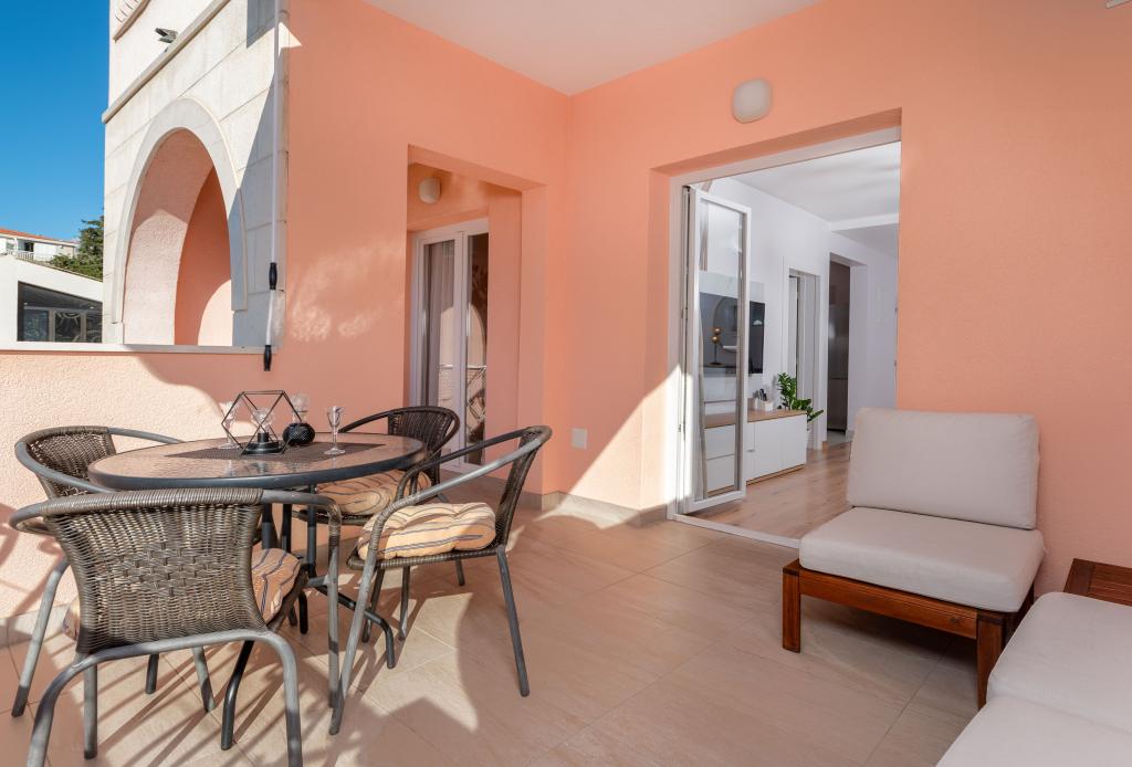 Villa Rossa is located in the center of Tucepi, 100 m away from the beach. All apartments are modern and functionally furnished and have balconies overlooking the sea. Equipment of all apartments include air conditioning, wireless Internet, satellite / TV, fully equipped kitchen, a toilet, shower or toilet, tub. The price includes tourist tax, electricity and water consumption, use of air conditioning, wireless internet, parking, bed linen, towels. Parking in the yard of the villa. In the vicinity of the facility of 100 to 200 m are: doctor, pharmacy, post office, ATM, currency exchange, shops, a bakery, restaurant, cafe, pizzeria, rent a boat, boat docks for trips, playground and a church.