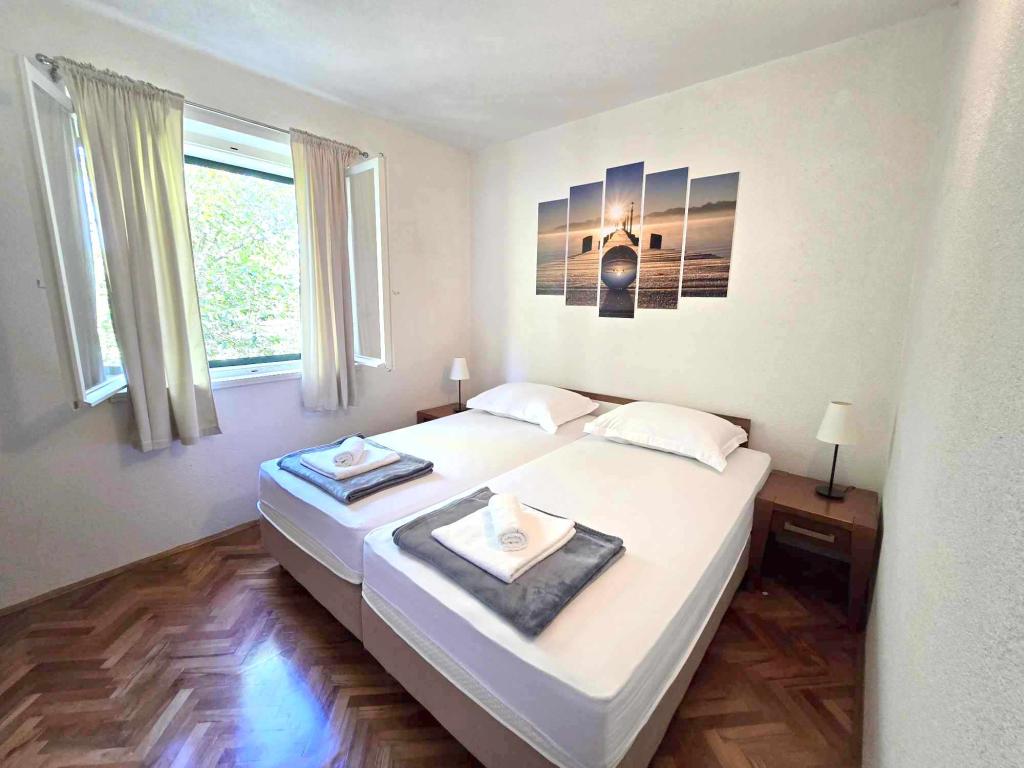 Stone house that is surrounded by a garden of 350 m2, the yard is completely fenced. The house is located 20 meters from the beach. It consists of two bedrooms, a living room with a sofa bed, a kitchen, a terrace with outdoor furniture. The living room and bedrooms are air-conditioned. Guests have at their disposal a canoe for 2 people, a grill, parking for 2 cars. The capacity of the whole house is for 7 people. The entire house and garden are intended exclusively for guests.