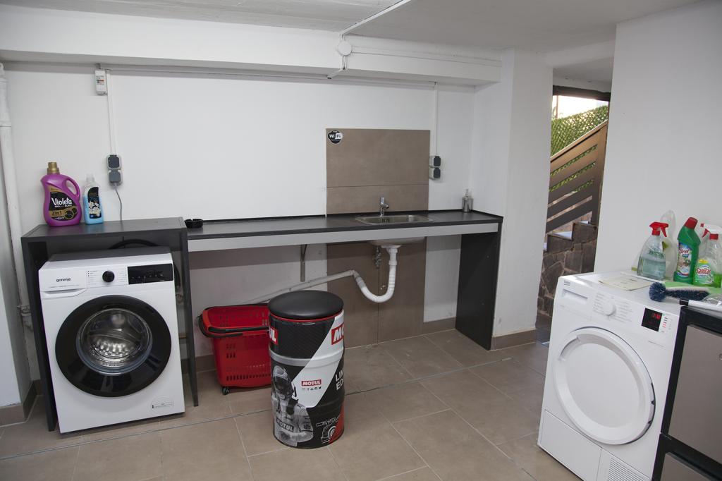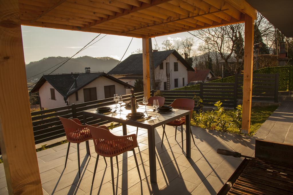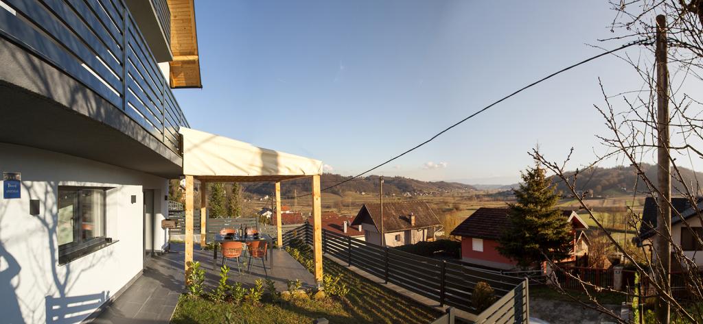 Surround yourself in style in this extraordinary space. This modern 4-star villa is located on a quiet hill above the Tuhelj Spa and has a wonderful view of the surroundings. The apartment on the ground floor (38m2) has everything you need for a perfect vacation and more. Fully equipped kitchen with oven, dishwasher and microwave with all accessories. TV with 100+ programs and Netflix. The outdoor terrace with a wooden pergola, barbecue and a beautiful view will relax you every time... The upstairs apartment is two-storey (70m2) and has 3 bedrooms, a large living room with a fully equipped kitchen, a sauna, a bathroom and a toilet. TV with 100+ programs, Netflix, PS4 console, BT radio, etc... The covered terrace offers a beautiful view of the surroundings. Access for guests Our guests have access to private parking and garage, laundry, outdoor terrace with barbecue and sink, hot tub (May-October), garden shower, sauna and much more...
