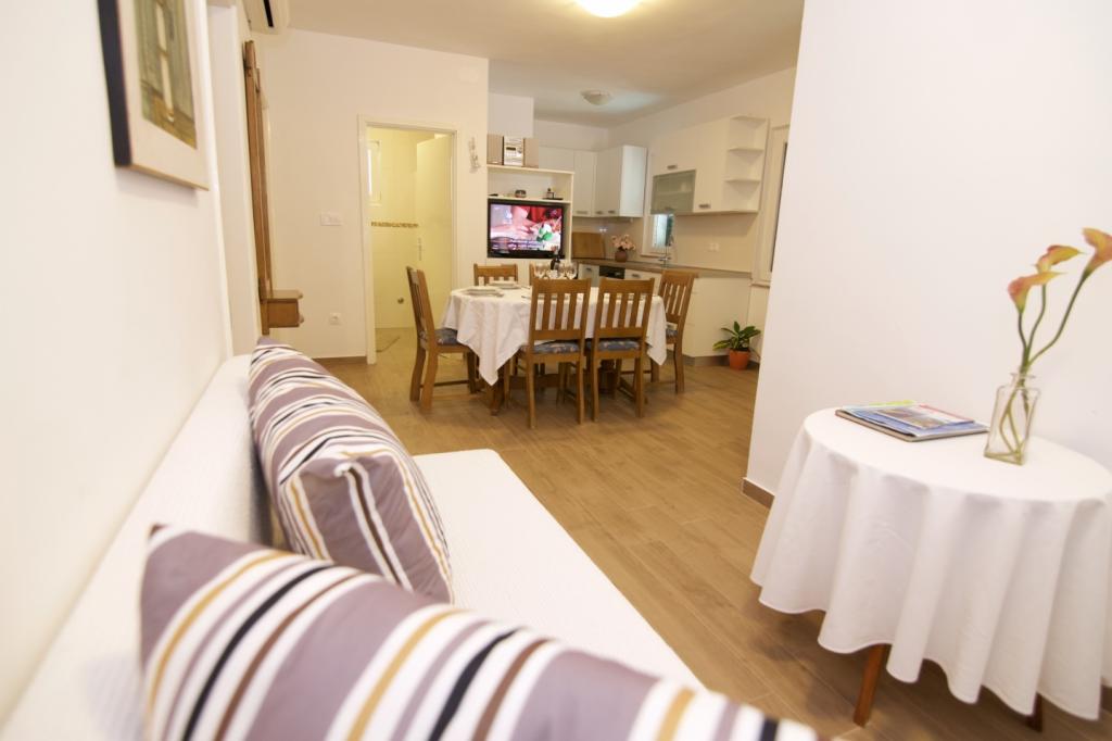 Apartments Fjaka. We offer you apartments for 4/5 persons, apartments for 2 persons and detached rental home for up to 6 persons, all well-equipped and fully furnished. 50 m far from the beach. All accommodation units have Air conditioning, Wireless Internet, Sat TV and Free parking place in the house yard. Cleaning after departure is included in price. Check in and check out time can be flexible depending of your arrival and departure time. Your hosts will provide you with all the information needed for an even more pleasant stay.