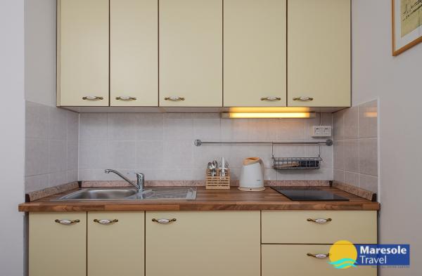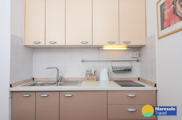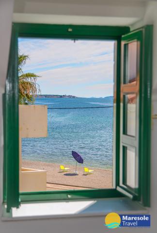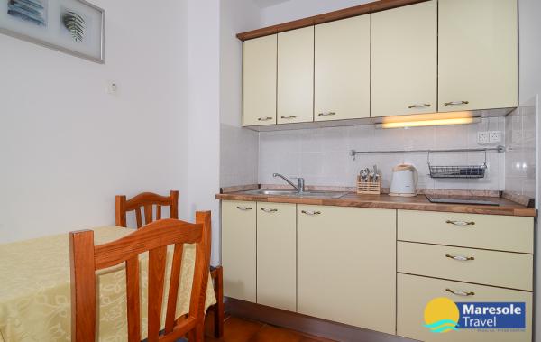 Modernly equipped apartments are located on the first floor and the second floor (attic) in the house in the center, on the first line to the beach, overlooking the sea. Apartments consist of living room with kitchen and dining corner in one, one apartment with balcony and sea view, one double bedroom, bathroom with shower / WC. Parking in public space in front of the house. - Supplement for pets E5, 00 per day.