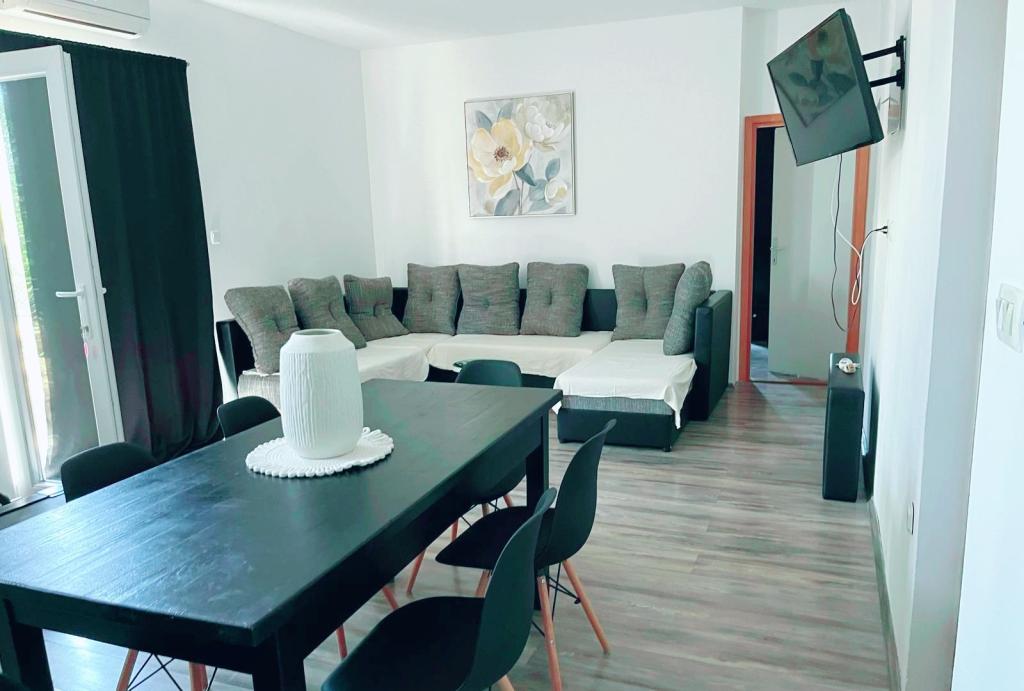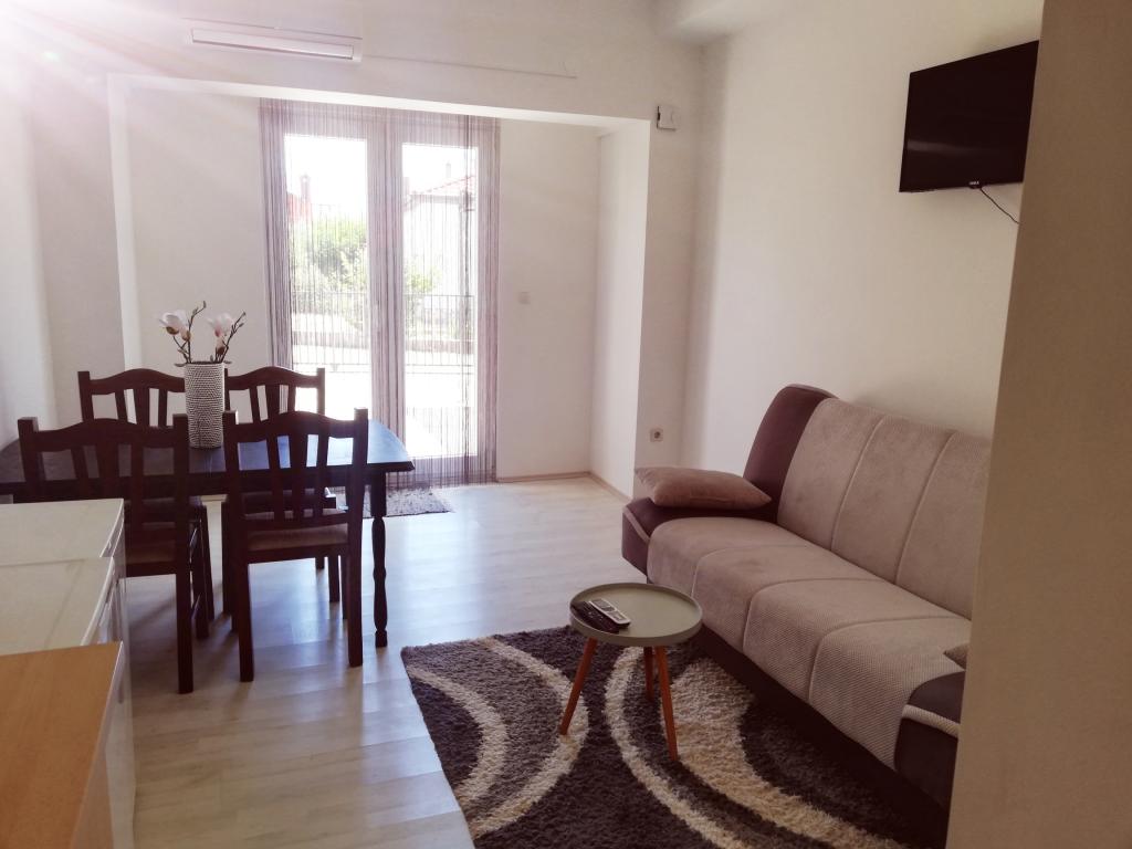 I offer fully equipped apartments. The main beach is a 4-minute walk away, no car needed. Parking is included in the price. Each apartment is separate and has its own entrance and terrace. Each apartment also has its own privacy. The facility is located in a quiet part of the town without crowds, surrounded by beautiful nature. In the immediate vicinity of the facility is untouched nature, forests, jogging, cycling and walking trails, spending time in nature. The sea is guaranteed to be clean, the beaches are clean and tidy, suitable for small children, mostly dominated by sand and gravel. The promenades along the sea are long and beautifully decorated. The town itself contains restaurants, taverns, pizzerias, fast food, cafes, bars, pastry shops, boat rentals, excursions ... Of course, there is also summer entertainment for everyone. Turanj is a Dalmatian town between Zadar and Biograd in the municipality of Sv. Filip i Jakov. The apartments also have air conditioning and wi-fi. We do not accept dogs!
