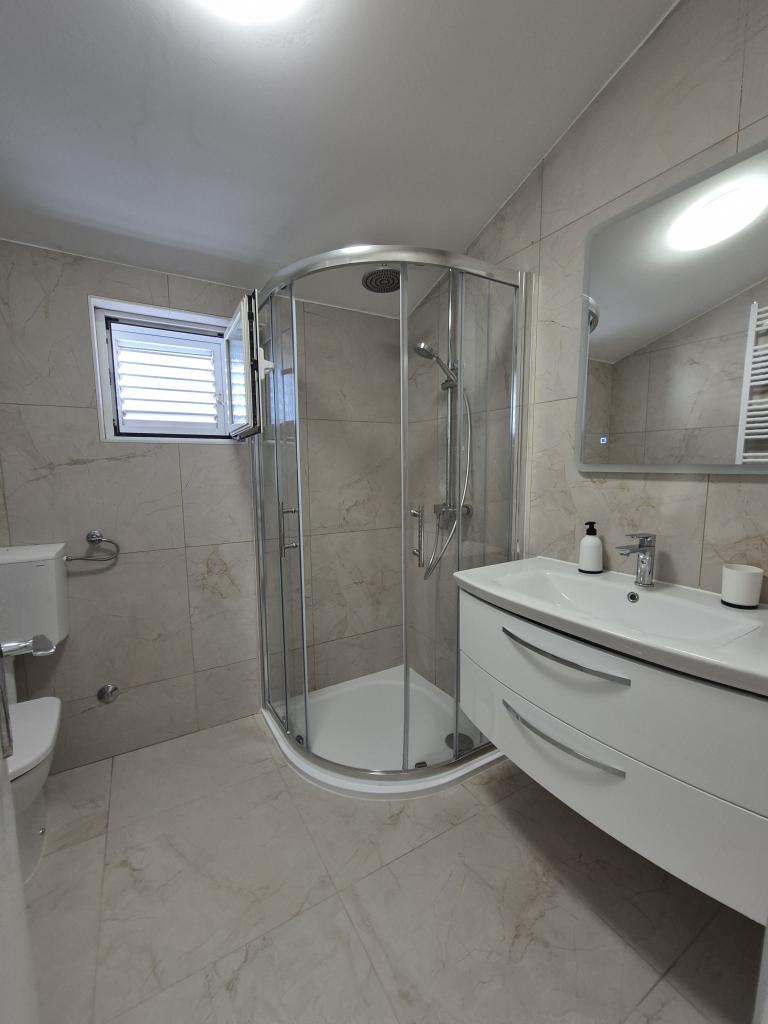 The apartments are located 90 meters from the sea, and in the immediate vicinity are all the important facilities: restaurants, shops, tennis courts and everything that will make your stay more enjoyable. If you are coming by boat from another country, the international ferry port is only 25 km away from our place. If you are coming by plane, then it is easy to reach our house, because the distance is only 20 km. If you are driving by car, our apartments are only 15 km from the highway. We offer 5 apartments and a parking space for your car. All apartments have: kitchen, living room, bathroom with shower, air conditioning, TV, balcony and parking space which is free for all our guests and no reservation is required.
