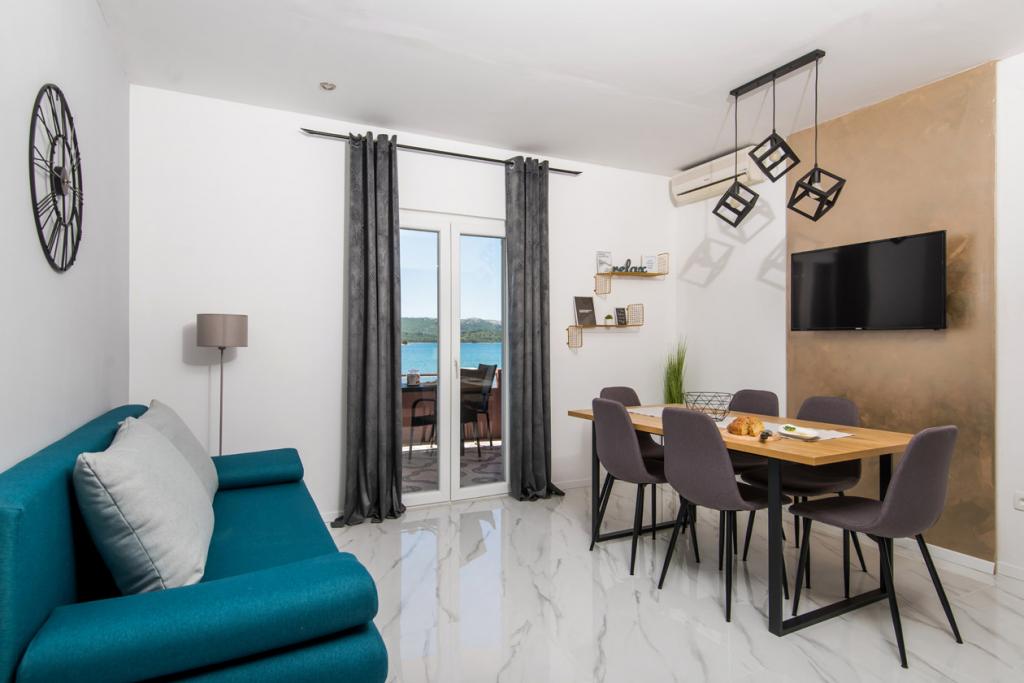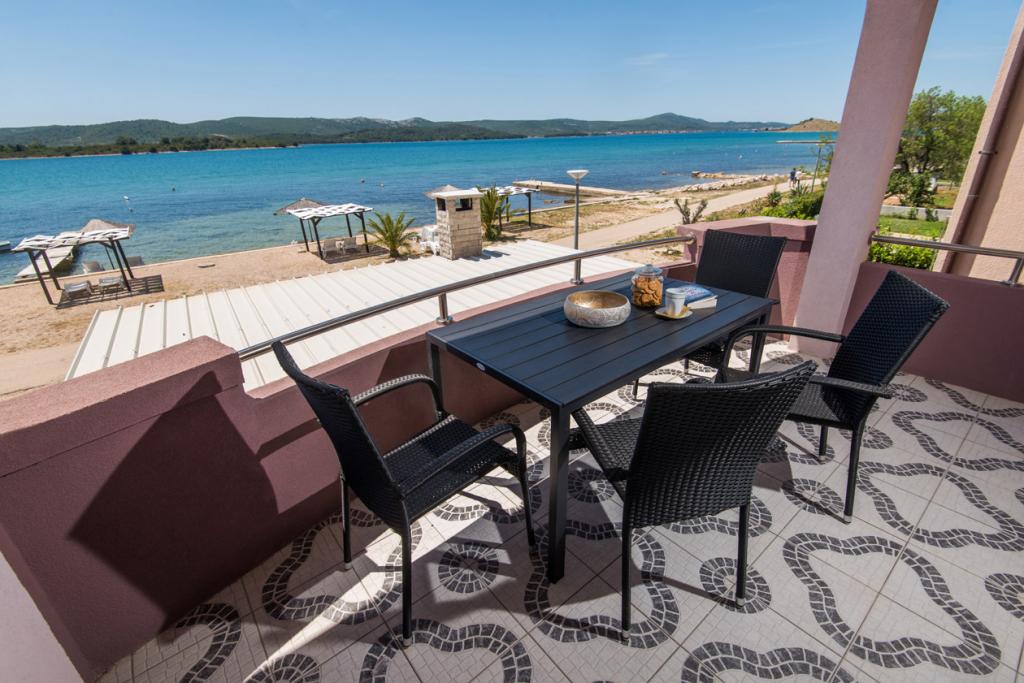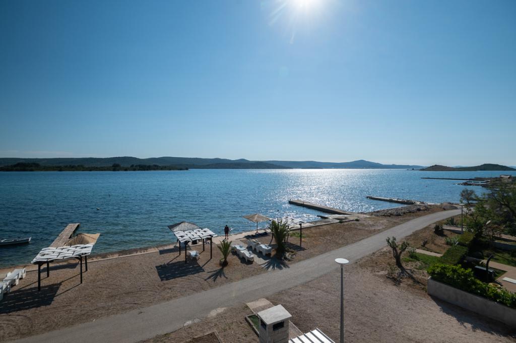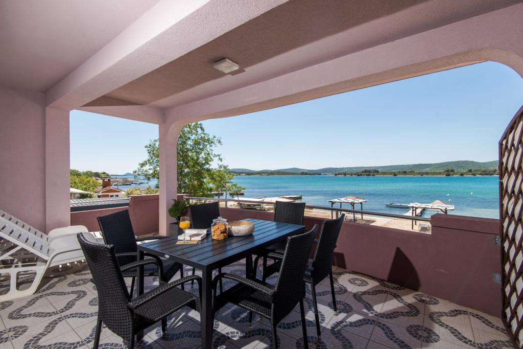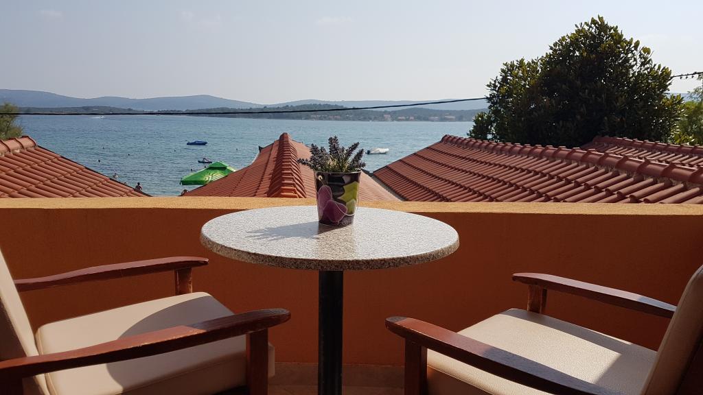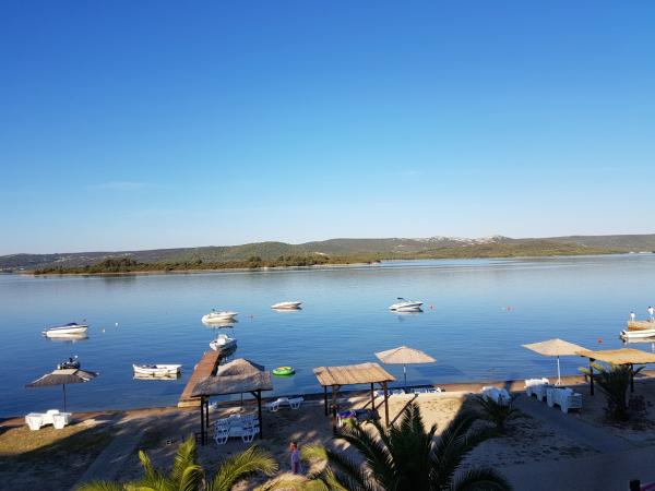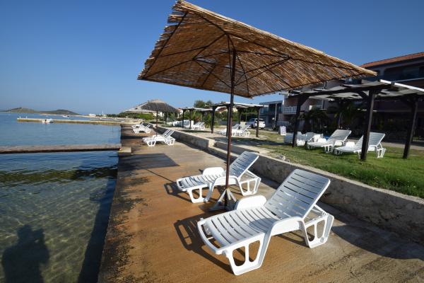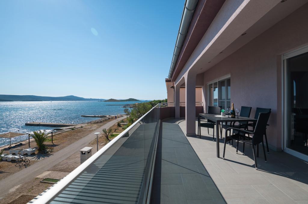 Find your peace and place in a building with 7 new apartments in Turanj, only 5 km away from Biograd and 20 km from Zadar. Turanj is a quiet place surrounded with 4 national parks distant 30 minutes from your apartment. The apartments are located at 15 meters from the private beach where your family are waiting for umbrellas and deck chairs. The apartments are equipped with air conditioning, satellite TV, and have balconies with sea views and safe parking and barbecue. There are studio, one-bedroom and studio apartments.