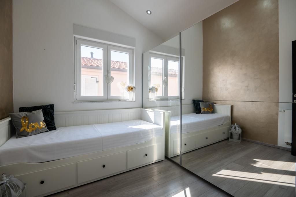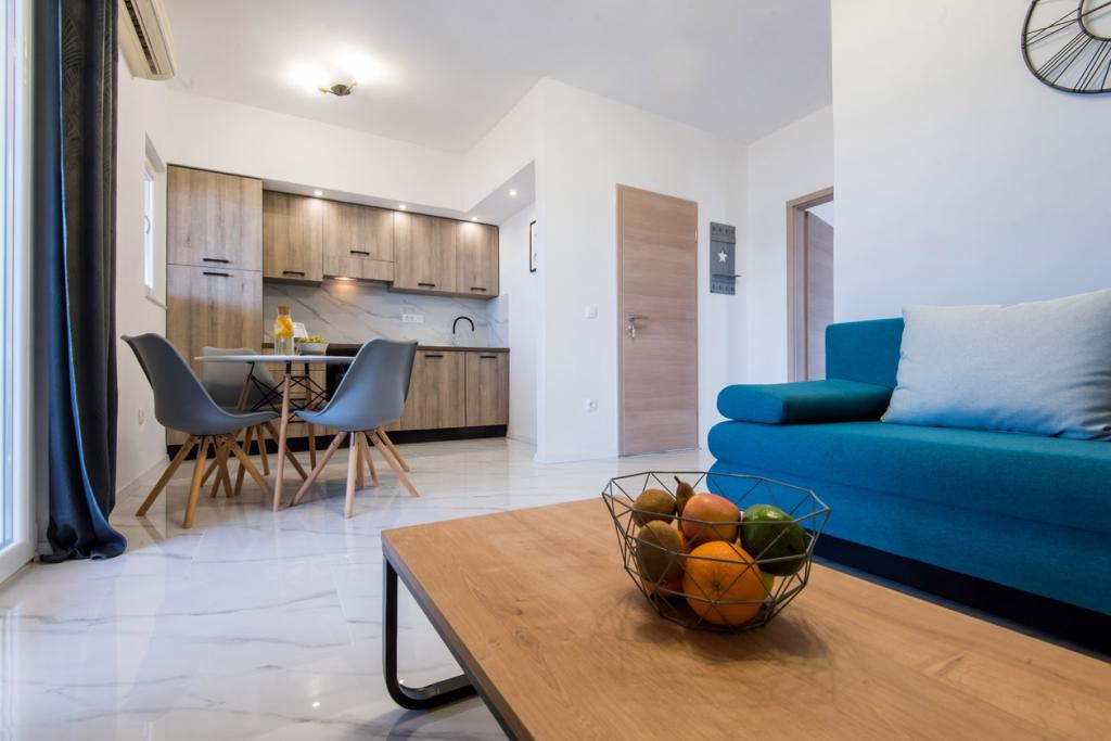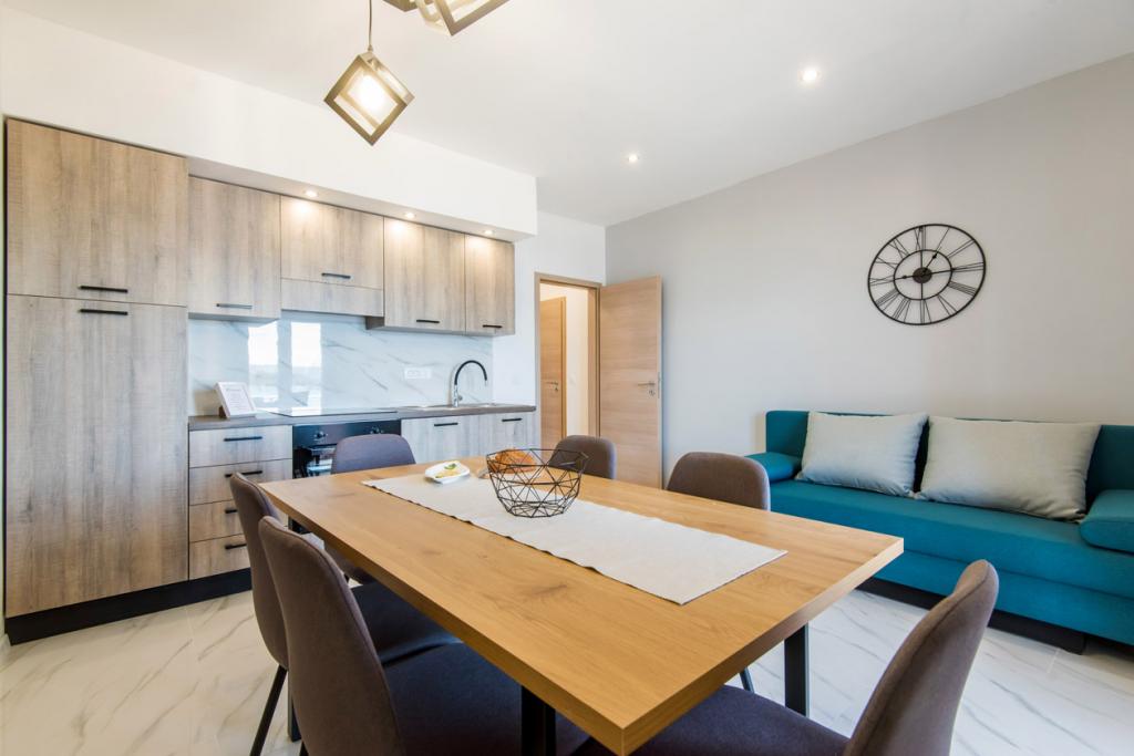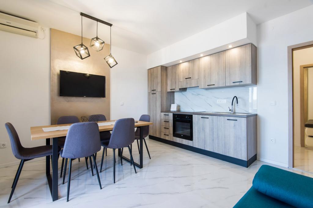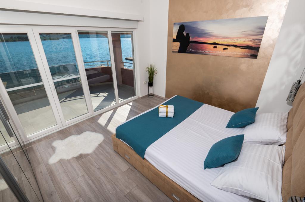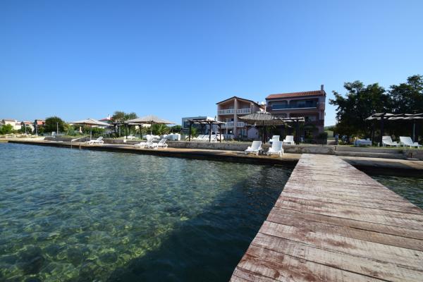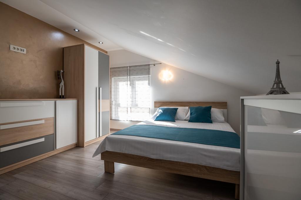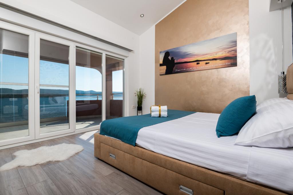 Find your peace and place in a building with 7 new apartments in Turanj, only 5 km away from Biograd and 20 km from Zadar. Turanj is a quiet place surrounded with 4 national parks distant 30 minutes from your apartment. The apartments are located at 15 meters from the private beach where your family are waiting for umbrellas and deck chairs. The apartments are equipped with air conditioning, satellite TV, and have balconies with sea views and safe parking and barbecue. There are studio, one-bedroom and studio apartments.