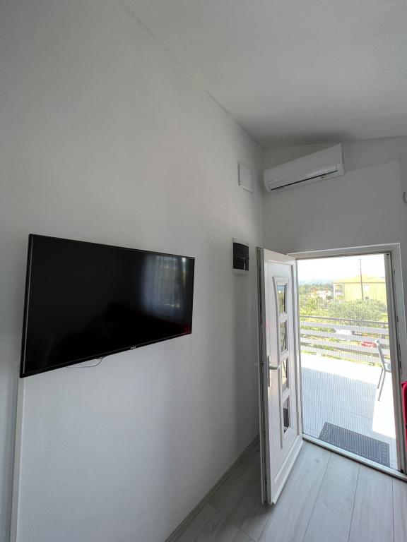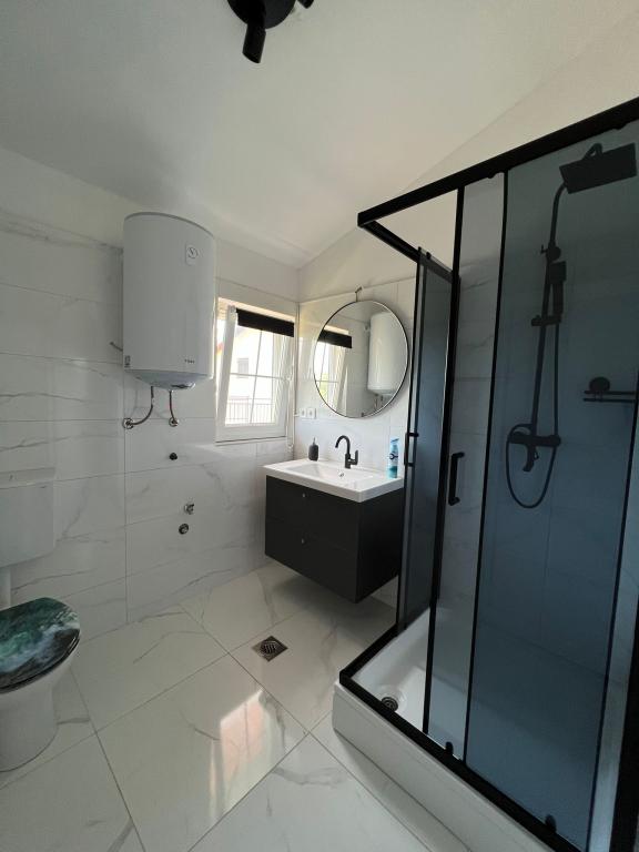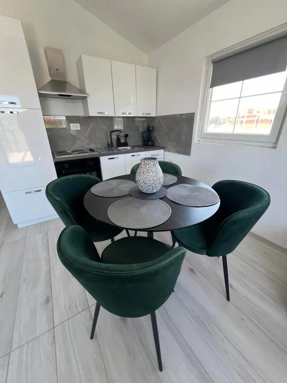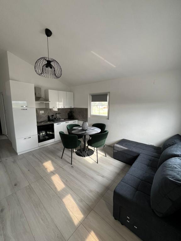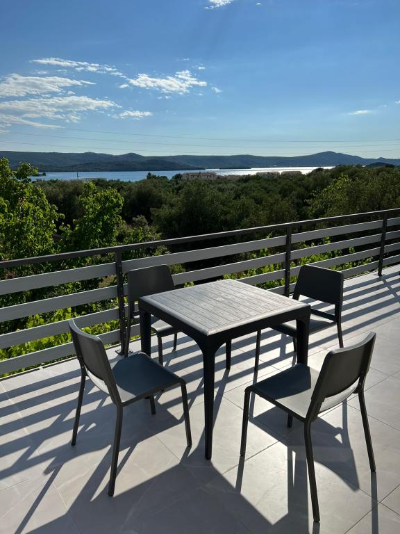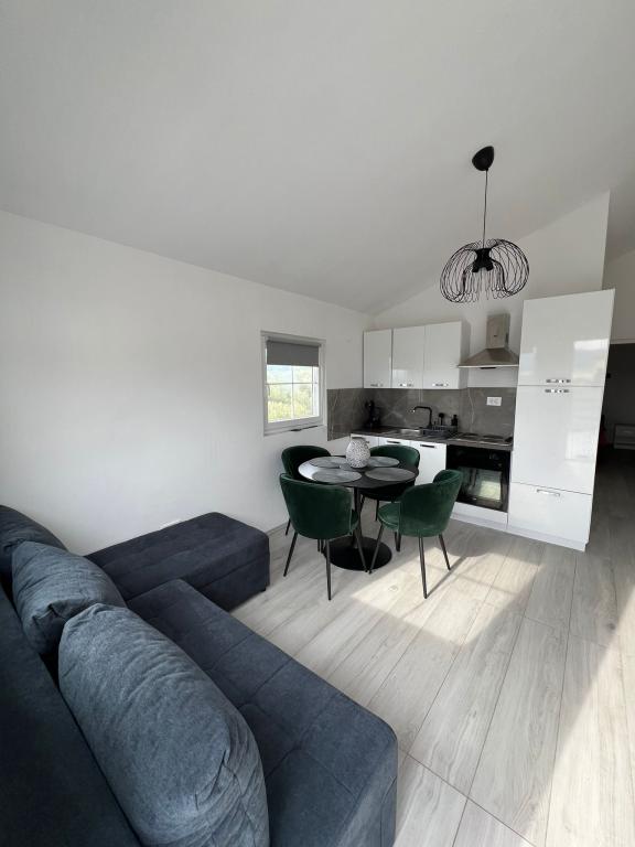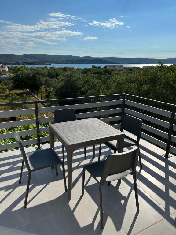 2 apartments for rent in a small quiet town of Turanj near Biograd na moru. The beach is 5.6 minutes walk away, the center is 7 to 10 minutes walk away. The apartments are modern, contemporary furnished and consist of one bedroom, bathroom, kitchen, living room and terrace with a sea view covered with a pergola. Air conditioning, wi fi, smart TV, dolce gusto machine, equipped kitchen, bathroom with washing machine, outdoor shower, barbecue, free covered parking. Above-ground pool, children's playground in front of the apartment for use in the price. The apartment is categorized for 4 + 1 person. Entrance to the apartment is at 2 pm, exit at 10 am. New categorization is in progress, so far it had 2 stars, now it will be 4 stars. Smoking is allowed on the terrace, not in the apartment.