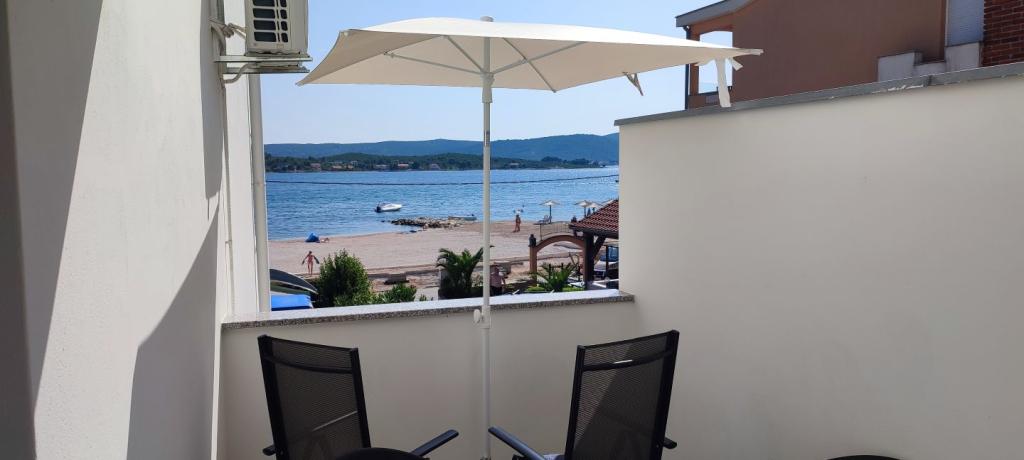 Maestral apartments are located in Turanj, first row to the sea. In front of the house is the beach and in the house we have 9 apartments for rent. The apartments are spread over 3 floors and are suitable for accommodating 3 or 4 people. All have balconies and sea views. In the yard there is a free parking for our guests. They are equipped with televisions, air conditioning and wi-fi internet. Turanj is an ideal place for a peaceful family vacation. The vicinity of Biograd, Zadar and the national parks of Kornati, Krka, North Velebit and Plitvice give this location additional value. It is very easy to go on a one-day excursion and get to know Zadar-Roman monuments, Forum, Cathedral of Sv. Stošije or visit some of the national parks. It is especially important to mention the Babac and Komornik islands in front of the Tour, which are an ideal dive site.