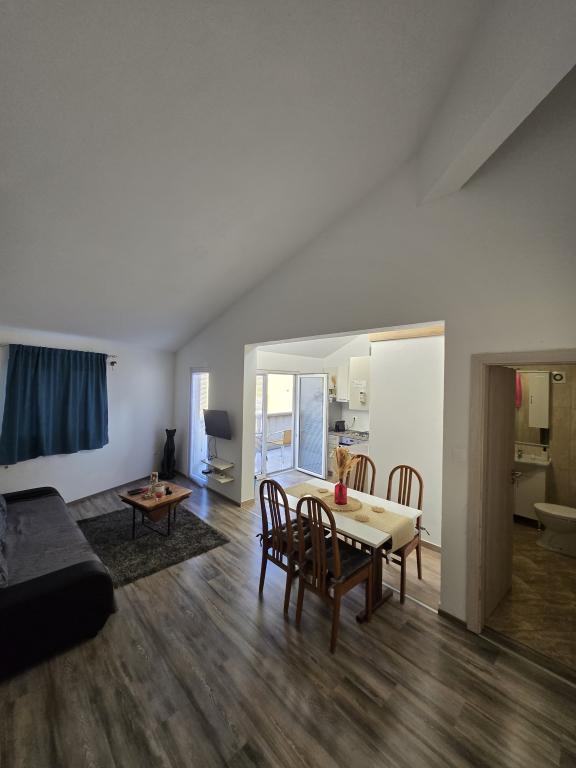 Residential tax is included in price.Maximum satisfaction. Quick responses to inquiries, willingness to answer questions. I appreciate the willingness to accommodate earlier. Apartment near a beautiful beach, clean, modern, spacious, with all the necessary equipment. The owners are nice, helpful, lived on the ground floor, always available. Upon arrival, the owner and my husband carried our luggage to the top floor, I was pleasantly surprised. I can only recommend it.
