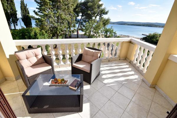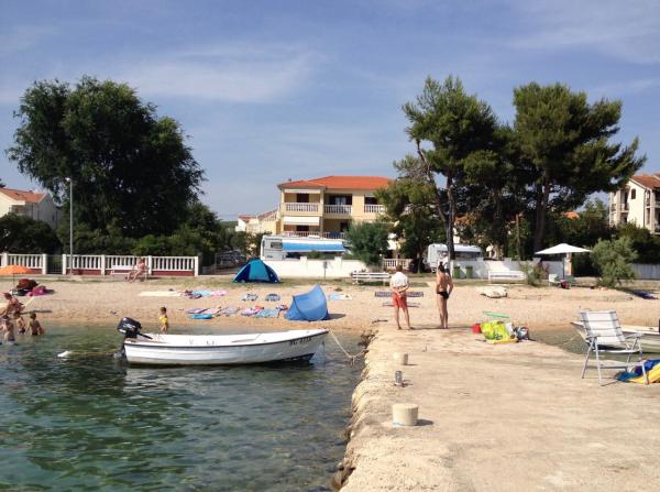 Completely and modernly decorated apartments, first row to the sea, are located on the promenade by the sea. The object is halfway to the center of Turanj and half way to the cent of Sv. Filipa and Jakova about 10 minutes walk from both centers. One of the beaches is in front of the facility and the others are close by. Crafts, restaurants, crafts, rent boats, beach volleyball, snacks, fishmongers and everything you need is close by and walking. Parking is provided throughout the facility. In front of the house is a moor where a boat mooring is possible.