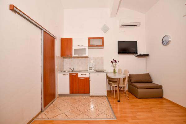 All apartments are excellently equipped. We have been coming here for years and have lived in all of them. Everything is very clean and in order. The house is right on the beach. Bars and restaurants are nearby. In the evenings it is pleasantly quiet around the house. The hosts are extremely friendly and careful to ensure that no strangers who do not belong to the house have access. The beach is also very child-friendly as the water only gets deeper slowly. We can highly recommend the Pedesic family; you can enjoy your holiday here.