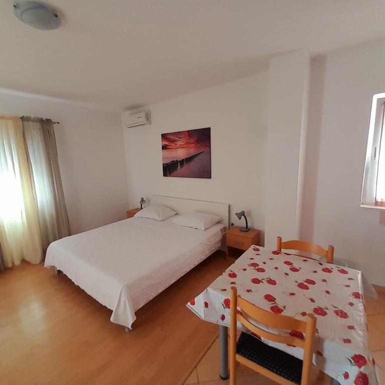 Dear Sirs, Zlata apartments are located in Turanj, five kilometers from Biograd na / m. We are located in a quiet street so you can get a good night's sleep and rest. The building consists of three apartments and a host on the ground floor who manages the facilities. Turanj offers everything you need for a peaceful vacation. The beaches are not overcrowded, which certainly makes your vacation more pleasant. In the evening there is a nice walk to St. Philip James which you will surely enjoy. Come and have a good time.