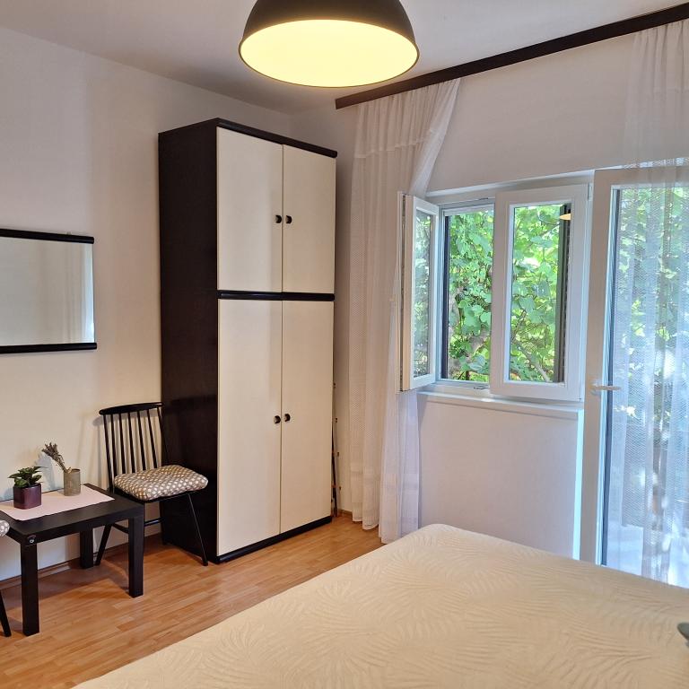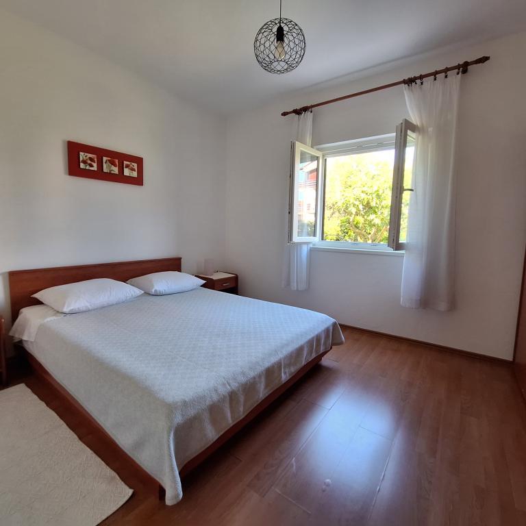 We offer you to rent the entire house of 100 m² with its own yard of 600 m² - an ideal place for a relaxed and peaceful vacation! Advantages: complete privacy, just 2 minutes walk to the beach, spacious yard full of shade and greenery, enjoy on the terrace or in the yard with a barbecue, secured parking for your car. Here you will find the perfect corner for relaxation and enjoyment in nature, far from the city noise. The house consists of 2 bedrooms, a large living room, a kitchen with a dining area and a bathroom. Distances: Zadar - 23 km Biograd - 4 km Šibenik - 50 km Proximity to National Parks: Krka, Kornati, Paklenica.