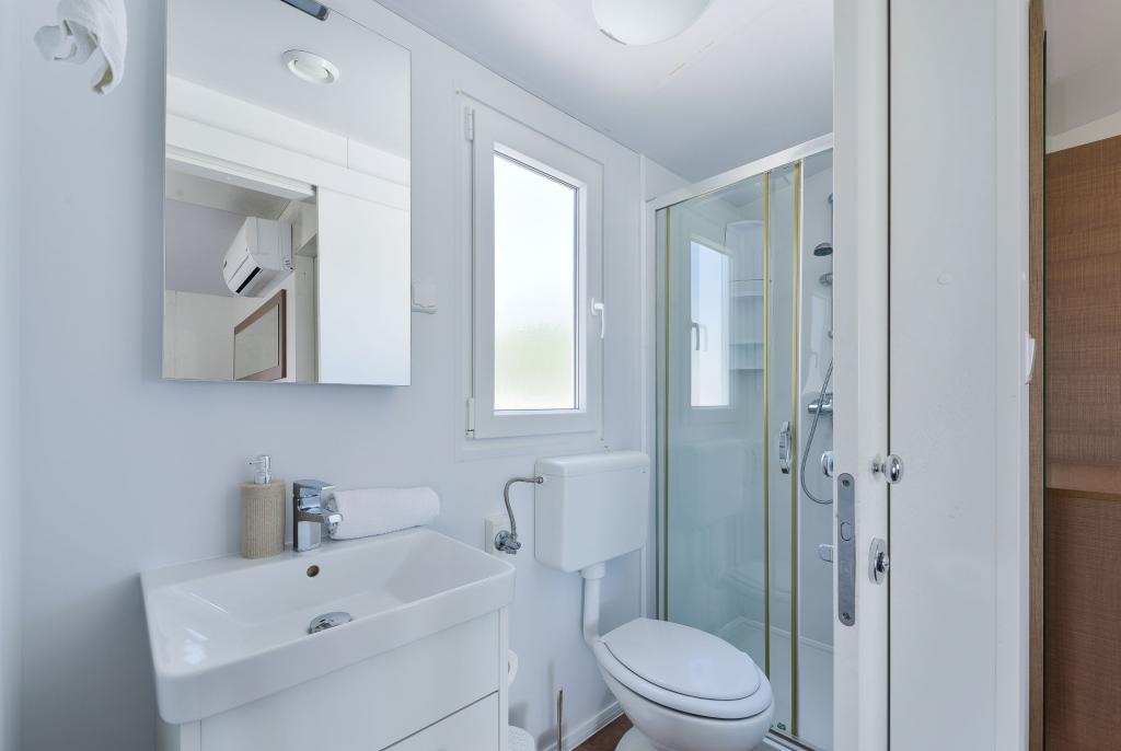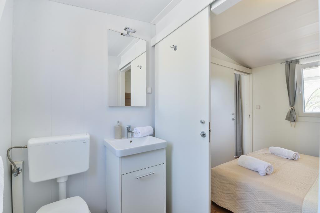 Fully and modernly equipped mobile home 40 m from the sea in Turanj. The mobile home is located in a small camp in a quiet part of Turanj by the sea. The house is fully equipped and has two bedrooms, two bathrooms, large terrace, grill, internet.