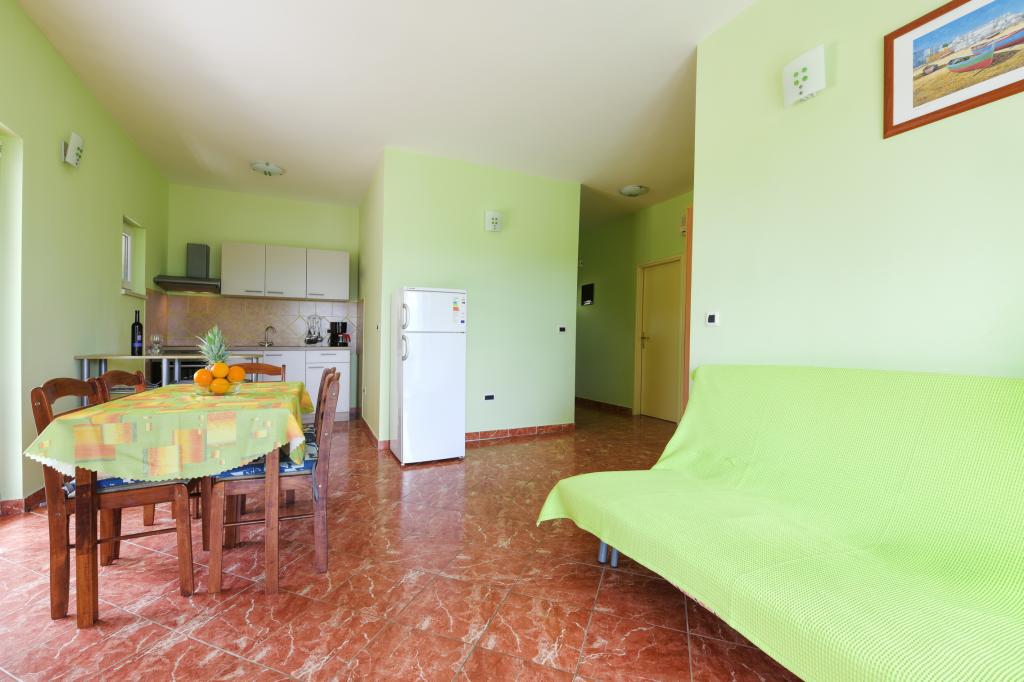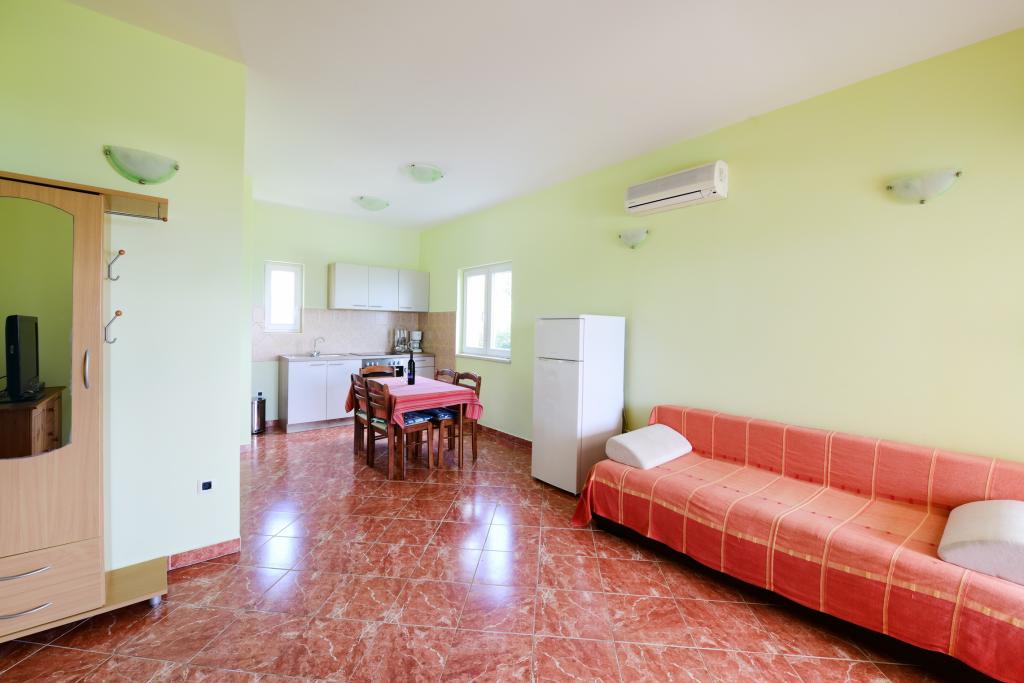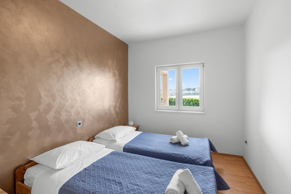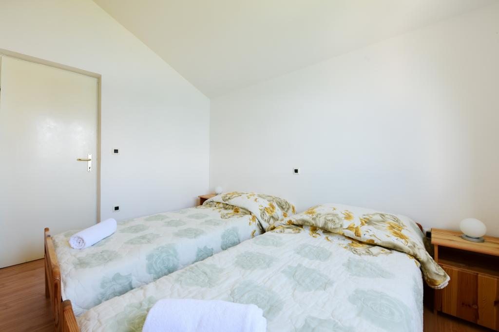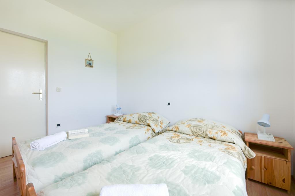 The apartments are located right by the sea in a quiet and friendly rural setting. Each apartment has a large terrace with a sea view. They are surrounded by a landscaped Mediterranean garden suitable for children to play. There are deck chairs and a shared barbecue in the garden. Each apartment has 2 bathrooms. Nearby, a 5-minute walk away, is the center where there is a market with products from local farms, as well as shops and restaurants. Emergency medical care is available 24/7. The beach directly in front of the apartment is pebbly and there are several beaches a short distance away where there is also a sandy beach. Arrival by car: the highway leads directly to the ferry port of Gaženica. After that, boarding the ferry to Preko follows. In summer, the lines are frequent, operating at least every hour. From the ferry port of Preko, you can reach the town of Ugljan, which is 10 km away, via the island highway. Arrival by plane: From Zadar airport, by bus or taxi, in 15 minutes. you can reach the ferry port of Gaženica directly, where you can board the ferry to Preko.