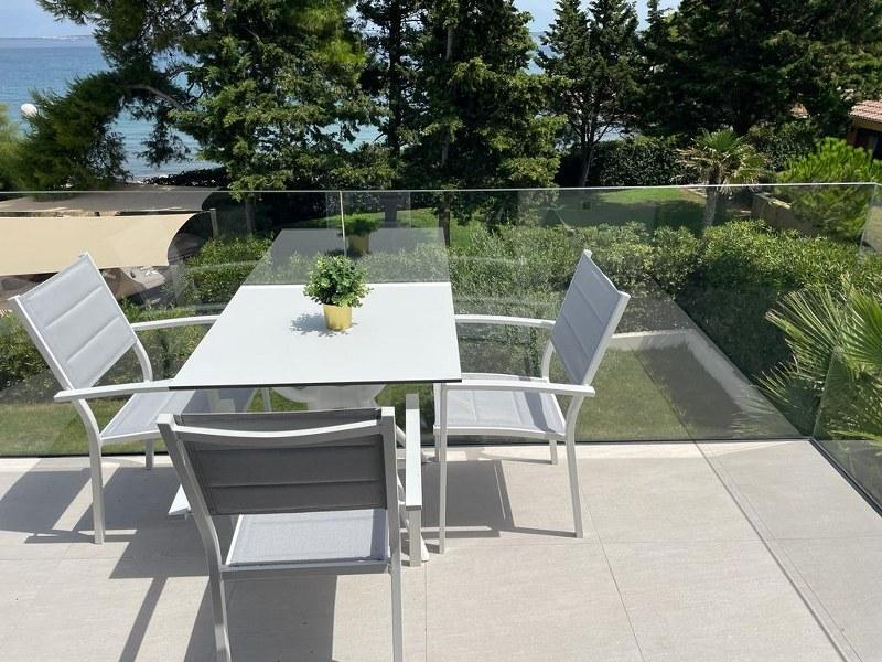 Completely new and modernly furnished apartment, first row to the sea, 50m2 with a spacious balcony for sunbathing and dining. Secured parking space within the courtyard of the building with an electric sliding fence. The apartments are designer decorated with a 55" internet TV in the living room and 43" in the bedroom, streaming services (such as Netflix). Kitchens equipped with a refrigerator, freezer, induction hob and oven, and dishwasher. Included, hairdryer, towels, bed linen, dishes, toilet paper. Close to the center with 3 grocery stores and 4 restaurants in the very center of town. There are also two pizzerias nearby. There are two beach bars nearby, "Ritam" and "Bičikleta". In the season, the "Ritam" bar has an interesting entertainment program with musical performers.