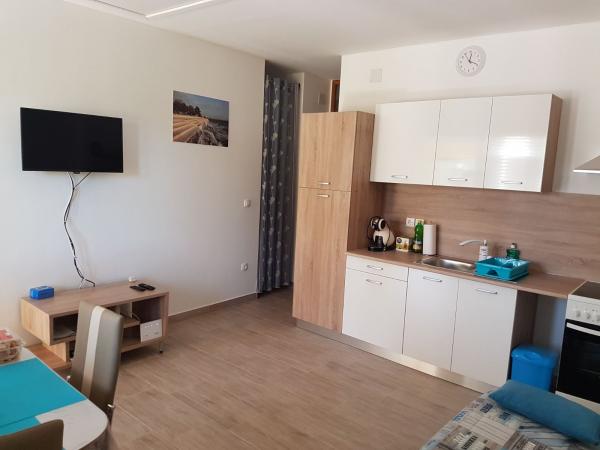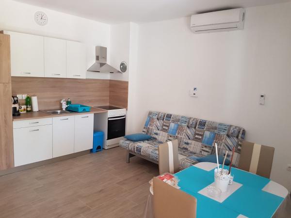 Apartment 2 2 is located on the floor of a family house, terrace and barbecue are on the ground floor. The facility is 100 meters away from the first concrete beach. After 150 meters there is a pebble beach suitable for children. The sandy beach is located 15 mins walk. Distance to the center is 300 meters, and in the center there are shops, mini markets, butchers, post office, cafes and restaurants.