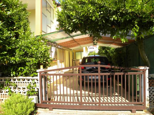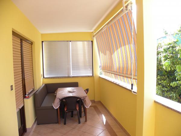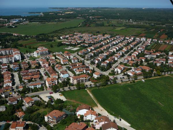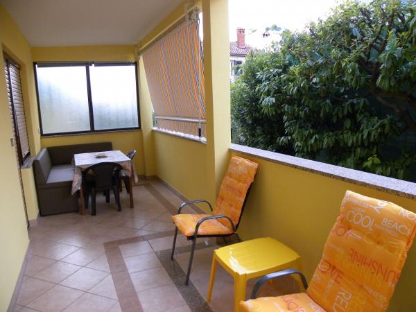 Umag, only 15 minutes from the border with Slovenia. It is the first tourist place in Croatia, on the road from Western Europe. Apartment EMI is located in the new village of Komunela, at the entrance to Umag. The house is located on the ground floor of a family house, surrounded by greenery, with a large terrace where you can stay all day. The furniture in the apartment is of a modern type, and the kitchen with the dining room and the room are modernly equipped (gas / electricity stove, large fridge freezer, microwave oven, dishwasher). The living room is modernly furnished. Large corner sofa, which can be converted into bed if needed, regal with LED lighting, large Smart TV with terrestrial and satellite programs. Wi-Fi router for internet signal amplification. Satellite radio. LED lighting. The same room has air conditioning. Rental price is 5 € / day. On the terrace there is an angular bench and a table for 6 people. Immediately next to the apartment is a covered parking lot. Parking and unlimited internet are free of charge