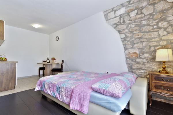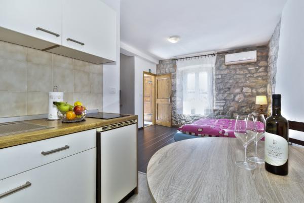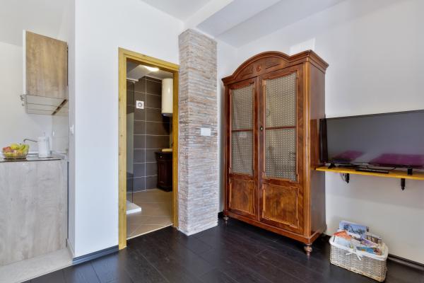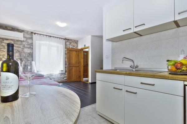 New open, fully renovated apartments in Istrian style. Each unit is equipped with its own private bathroom, fully equipped kitchen, air conditioning and a terrace. Each unit has an LCD TV with satellite channels and antique wooden furniture. The bathrooms are equipped with a walk-in shower, hot water, complimentary toiletries and towels. Free Wi-Fi is available throughout the property. Apartments are located 30m from the supermarket, 200m from the main sandy beach, 500m from the Central ATP Stadium, 700m from the square and the old town core. Parking is not included in the price. Pets are welcome and their stay is not charged. The arrival of a child is possible up to 6 years of age due to the size of the bed. Child stay is free of charge.