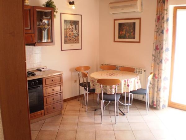 Two bedroom second floor apartment located in Punta, quiet, residential area of Umag. The accomodation is situated approx 200m from the sea and 1km from the town centre. The apartment is 80 m2 in size, sleeps 4-5 people, is type A4+1 and has 3 star rating. It consists of a main bedroom with a large double bed, second bedroom with 2 single beds ( can be joined together),main bathroom and open plan kitchen/living area with a balcony overlooking back garden. The apartment is equipped with an air conditioning, central heating, flat screen TV ( Croatian and free to air satellite channels), oven, fridge, freezer and coffee machine. Designated parking space is available directly in front of the building. Sports centre Stella Maris is situated only few hundred meters away, where the oldest ATP tournament in Croatia – Croatia Open Umag is held every summer. Punta boasts many sports facilities, hotels, swimming pools and a marina.