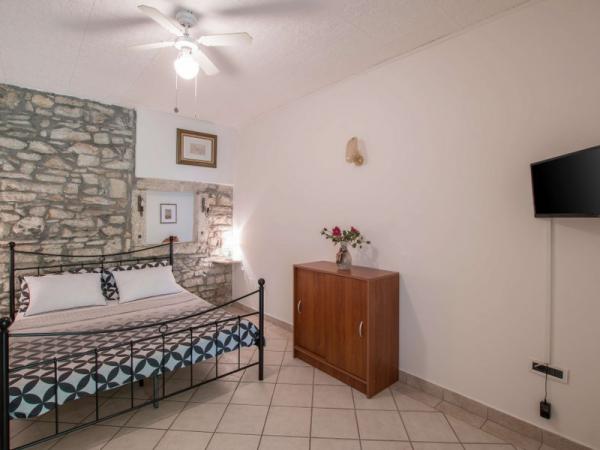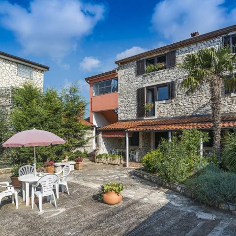 Istrian stone house with 5 apartments. Four apartments are located on the ground floor. All have terraces with a beautiful garden. It is 5 minutes away from the most beautiful beaches in Umag. All apartments have fully equipped kitchens, terraces, indoor parking, barbecue. Around the house is a large garden with olive trees, figs and greenery. Each apartment has its own parking space. The garden and the house are fenced. Guests have peace and quiet. In the garden there is a grill with tables and deck chairs.