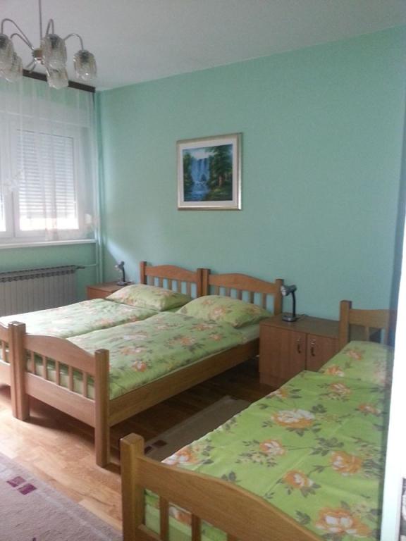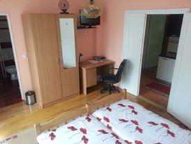 Private accommodation Setnik is located in the very center of Valpovo, it has two rooms (1st room - 2 beds + 1 extra bed; 2nd room - 3 beds + 1 extra bed). The rooms are fully furnished and have a separate entrance that is secured with its own key, Wi-Fi signal coverage, air conditioners, flat-screen TV, and an attached kitchenette that is equipped with all the appliances necessary for a pleasant longer stay, including dishes and cutlery. .The rooms include a private bathroom with a shower, bidet, slippers and free toiletries. The accommodation is decorated with an interior space arranged for socializing and dining according to the needs and wishes of the guests, a courtyard terrace of 50 square meters of covered space with relaxing accompanying elements (outdoor armchairs, garden swings, large TV set, barbecue, landscaped green area, summer kitchen open for use in addition to the terrace, also equipped with all related appliances and utensils and crockery) and an arranged parking space
