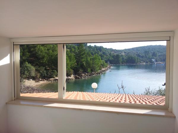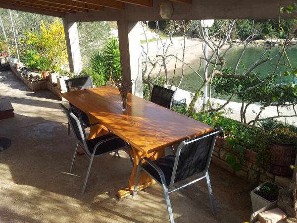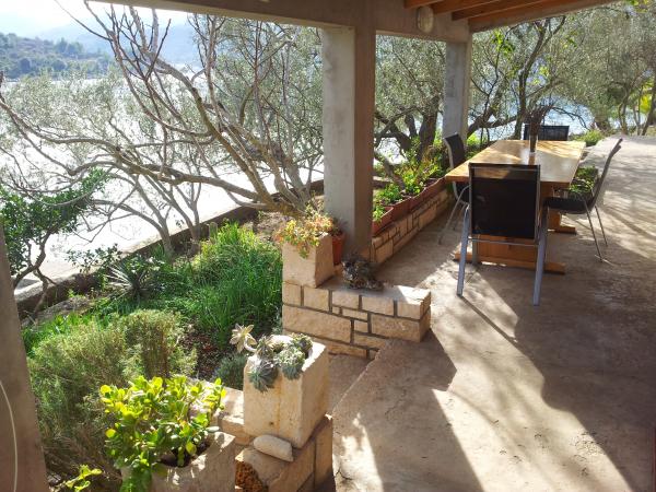 NOTE: All dates in July and August have been completed. In the immediate vicinity of Vela Luka, in a quiet bay shallows located a small holiday home. From view almost completely hidden by olive trees, fig trees and flowers, and from the sand and pebble beach located less than ten meters. Equipped with solar system electricity, the house has a kitchen with a fireplace, living room with a comfortable sofa / bed and TV, a bedroom with a double bed, extra room for reading and relaxing and a bathroom. It is designed for 4 people with the possibility of extra additional bed for 1 person. There are two terraces and outdoor fireplace. In the neighborhood there are no other houses, and in the second part of the bay is located hotel. It has it's spacious parking lot. The city center is 2, 5 km; 5 minutes by car, 20 min walk or bike ride along the coast. The village has all the necessary facilities such as pharmacies, clinics, post offices, banks and shops as well as cultural and archaeological Sights