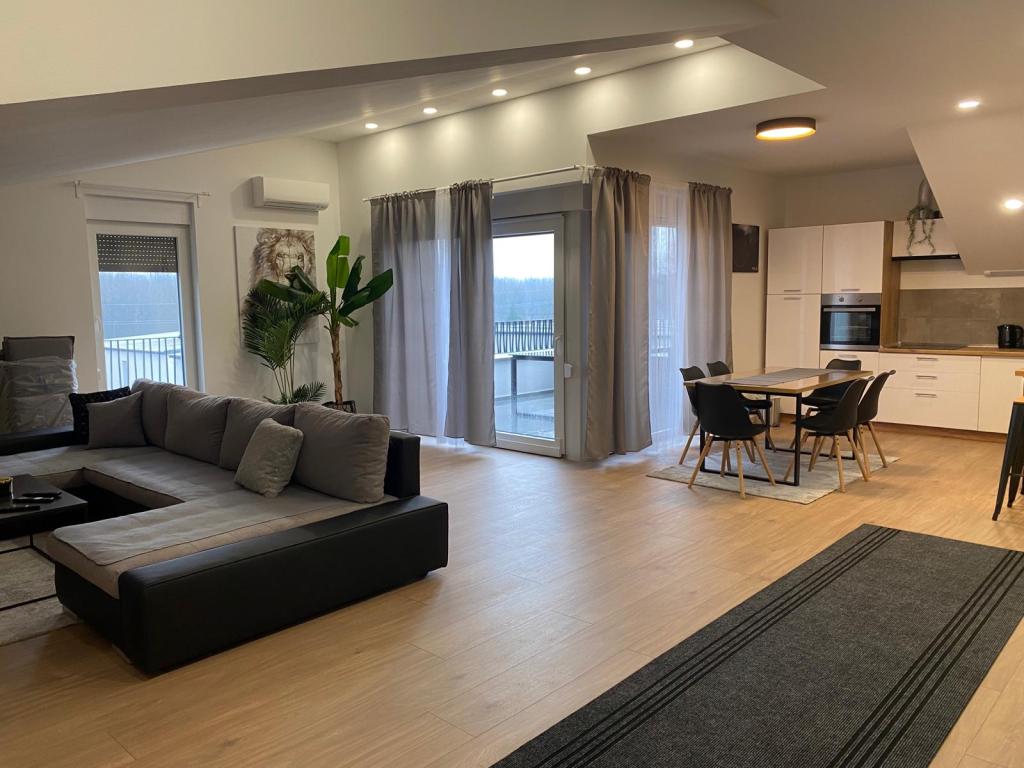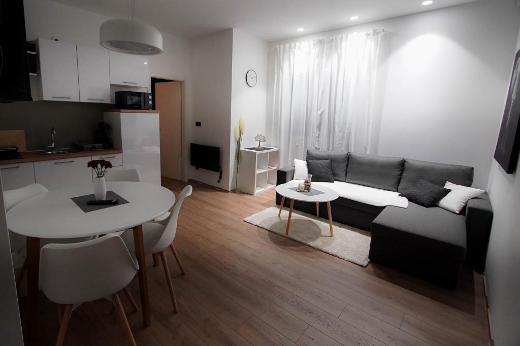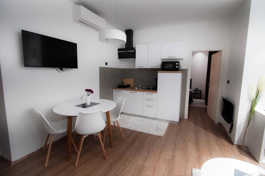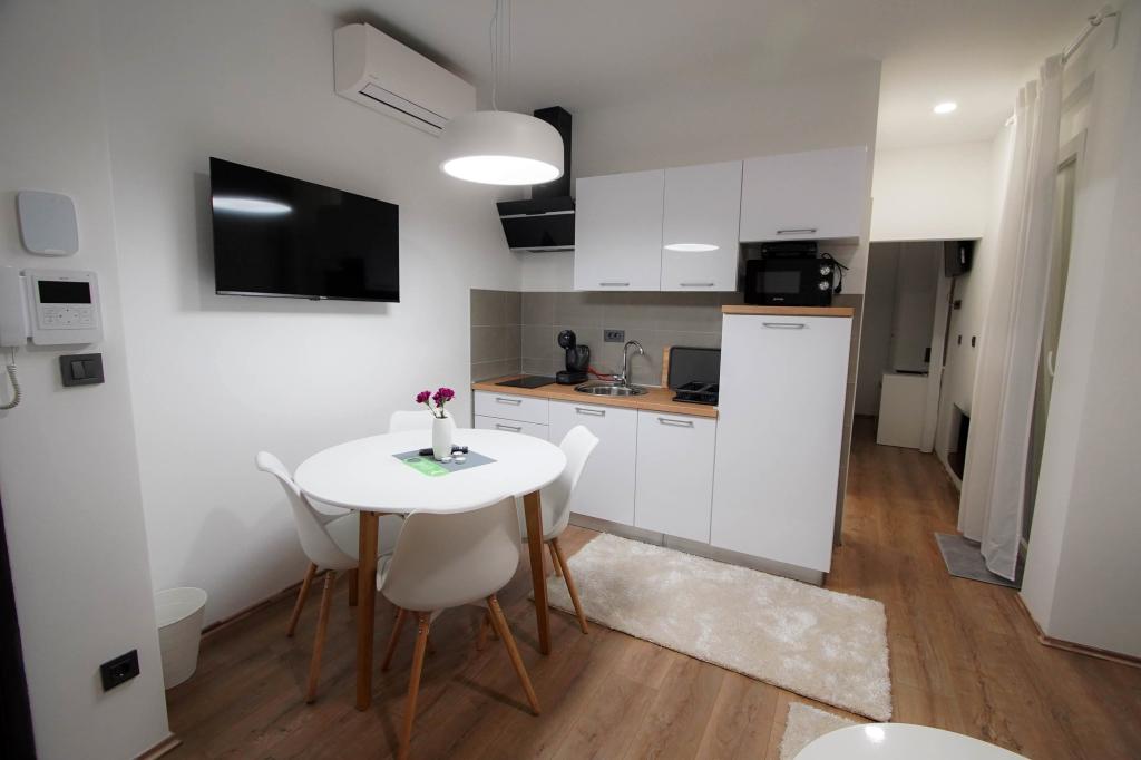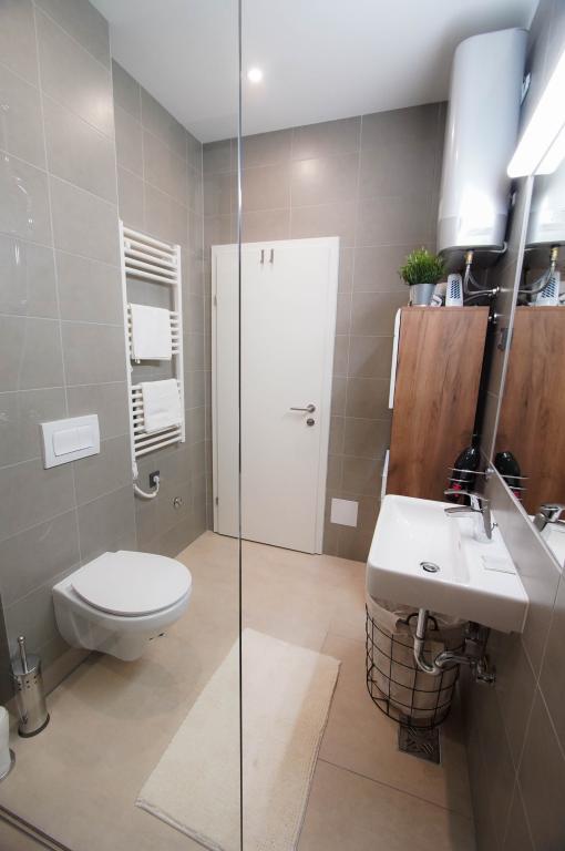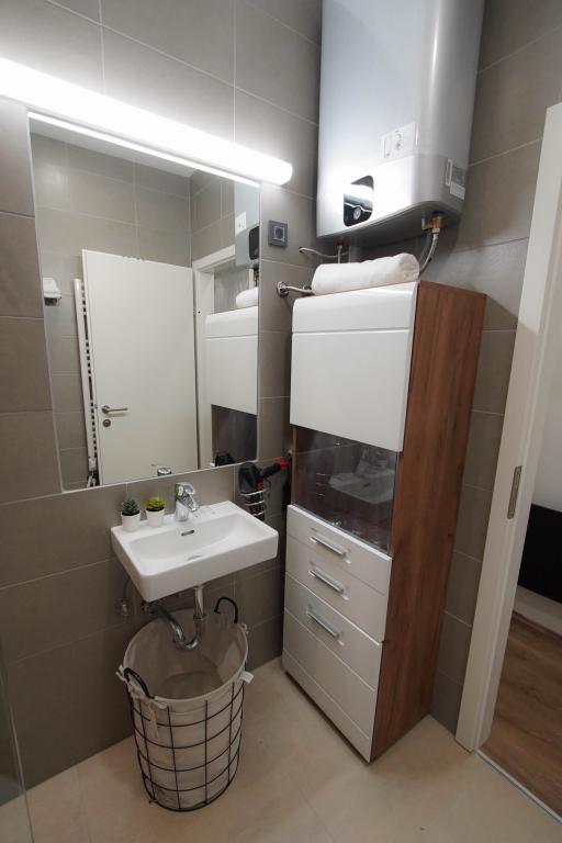 All apartments are spacious, modernly furnished, fully equipped and air conditioned, and include a living room with a fully equipped kitchen and satellite TV, a separate bedroom with spring box beds and a satellite TV, and a bathroom with underfloor heating and a walk-in shower. Each unit has a balcony or terrace, and free wifi is available in all apartments. Swiming pool is open on the summer and sauna thrue the winter sezon. Our guests have the use of the yard space and furnished terraces as well as the barbecue at their disposal, and are provided one private parking space per apartment. All parking spaces (16)are located within the gated yard and under 24h video surveillance. We can organize taxi from/to the airport for you. For more information about additional paid services (Business and Business+ packages) we offer to our business clients please contact us.