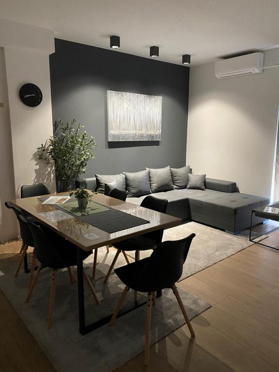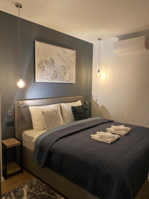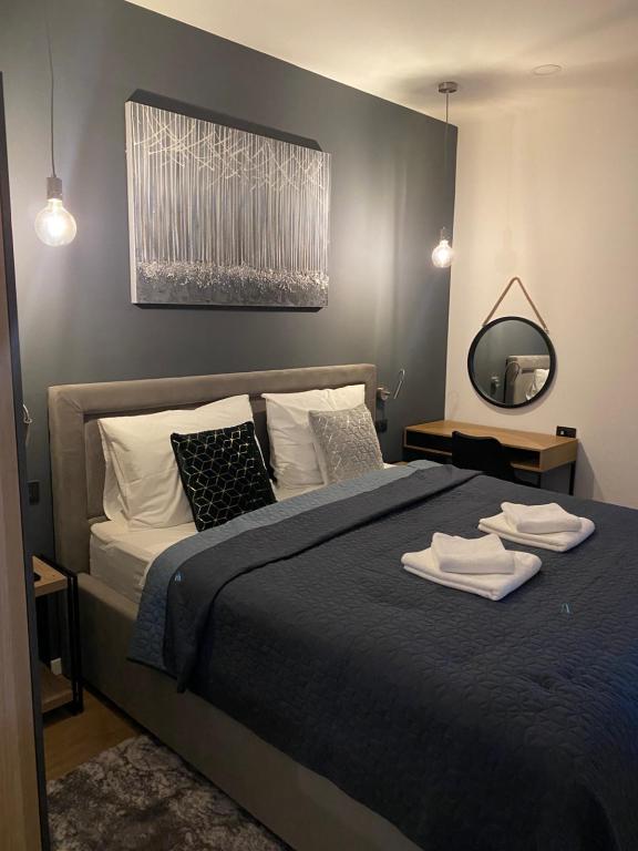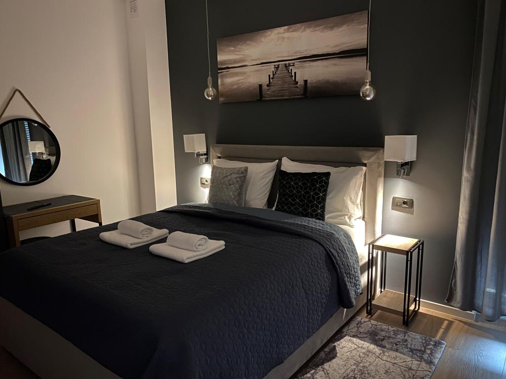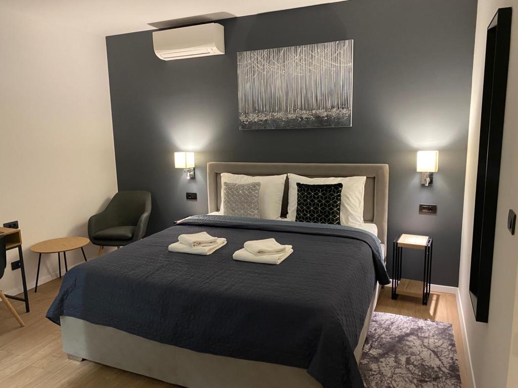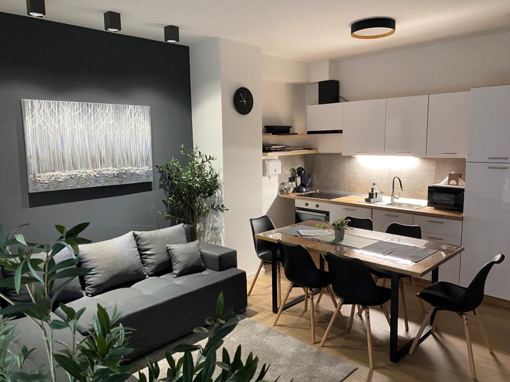 All apartments are spacious, modernly furnished, fully equipped and air conditioned, and include a living room with a fully equipped kitchen and satellite TV, a separate bedroom with spring box beds and a satellite TV, and a bathroom with underfloor heating and a walk-in shower. Each unit has a balcony or terrace, and free wifi is available in all apartments. Swiming pool is open on the summer and sauna thrue the winter sezon. Our guests have the use of the yard space and furnished terraces as well as the barbecue at their disposal, and are provided one private parking space per apartment. All parking spaces (16)are located within the gated yard and under 24h video surveillance. We can organize taxi from/to the airport for you. For more information about additional paid services (Business and Business+ packages) we offer to our business clients please contact us.