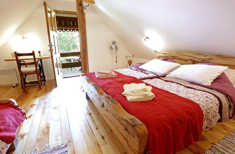 The vacation house and apartments are located in the house Sunčani Brijeg, and can be rented individually or as a whole house (for 11 people). The location is Pokupsko municipality, and the house is located next to the Kupa river and has a beautiful view of the river. In addition to the accommodation units, there are also associated terraces, as well as a gazebo with a barbecue for the accommodation of several people. The house is old oak, but completely renovated in that style, and equipped with furniture in that style. The house is fully equipped for a pleasant stay. In addition to its peace, it also offers a wonderful view of the surrounding nature, primarily of the Kupa River. The distance from Velika Gorica is 30 km, to the thermal pools in Topuski 20 km, to the adrenaline park in Hotnja 10 km, and to the Plitvice Lakes 90 km. In the summer months, the Kupa River is ideal for swimming because it can warm up to 28 degrees C, with a note that the Kupa River in that part has an extremely calm flow and is clean.
