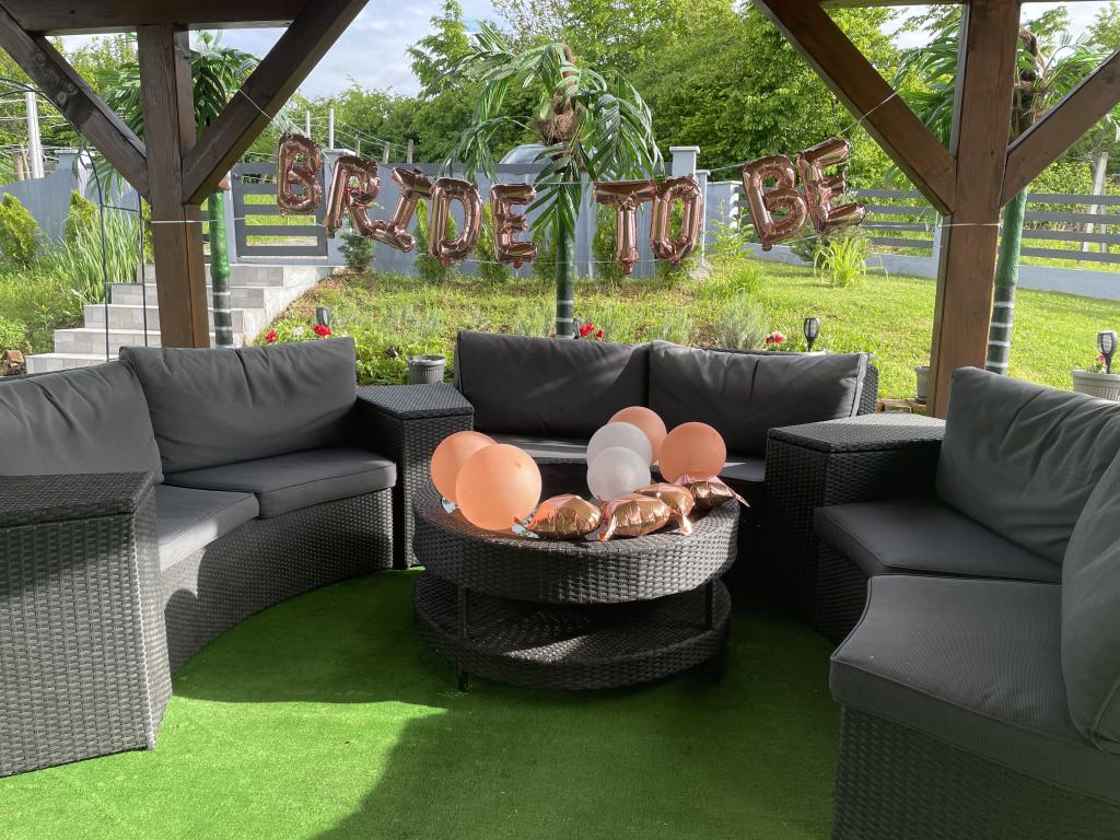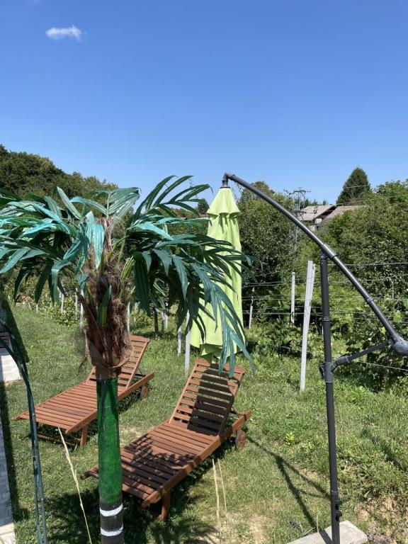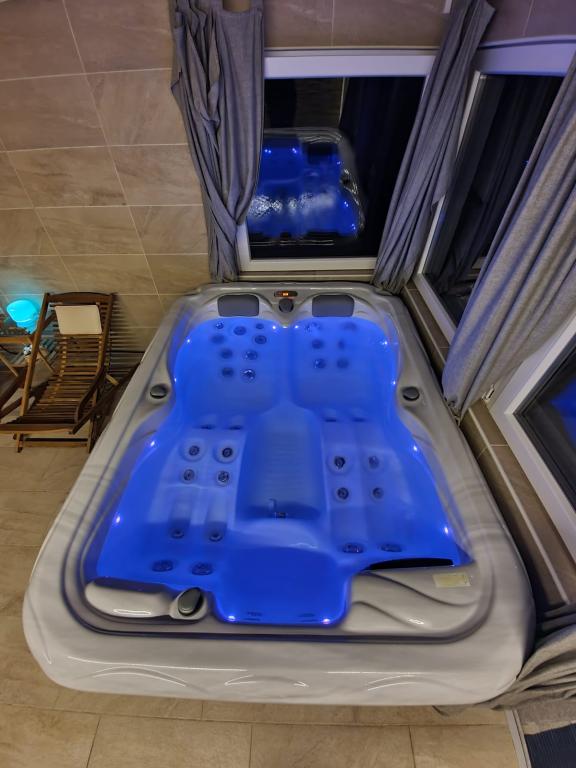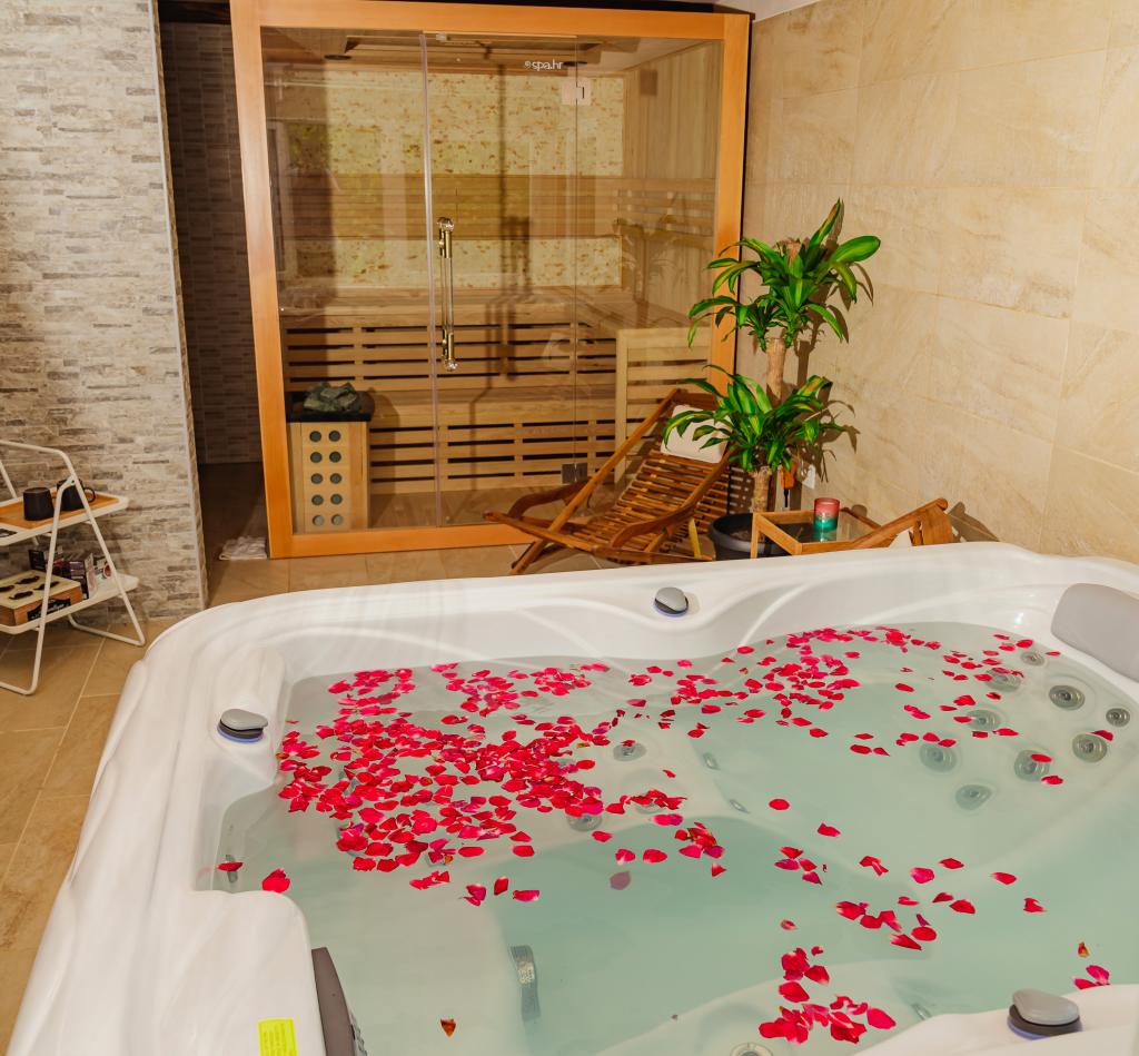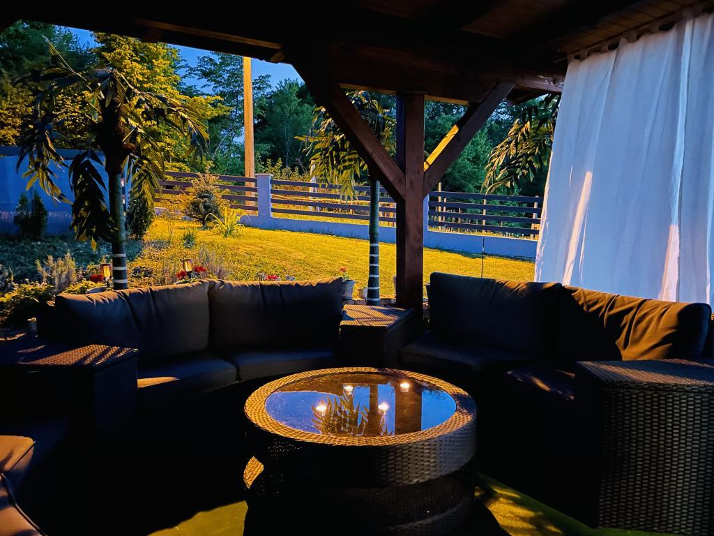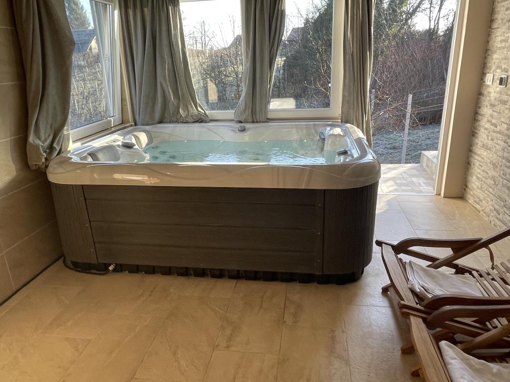 The vacation house "Wellness House Gudci" is located on the hills of Vukomeričke gorice, in the town of Gudci. It is surrounded by forest, vineyards and pure nature. It is full of contents for rest and entertainment. It is a 15-minute drive from Franjo Tuđman Airport. It contains a large sauna for 5 people that has a place to lie down and the possibility of adjusting the temperature so that you have both a Finnish and a Bio sauna depending on your needs, floor heating is in the entire wellness area, a hydromassage pool with a large number of jets and an Ozonator that is responsible for the constant water disinfection. An aromatherapy diffuser is available to all guests. The Wellness Center is available 24 hours a day and has its own separate entrance. The view is only of nature. Blackout curtains, LED lighting, starry sky, large thermostatic shower. The thermal cover of the pool, the temperature of the hydromassage pool can be adjusted individually. Color therapy is available in the sauna and hydromassage pool.